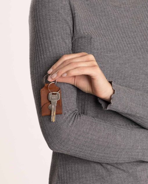 Our high-quality leather keyring “Aimo” is the perfect combination of functionality and style. Its elegant, minimalist design showcases your keychain beautifully and offers you a durable everyday accessory. The chrome-free leather is soft to the touch and particularly easy to care for – a true eye-catcher that’s environmentally friendly.
