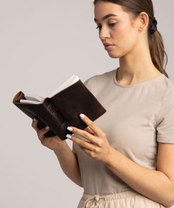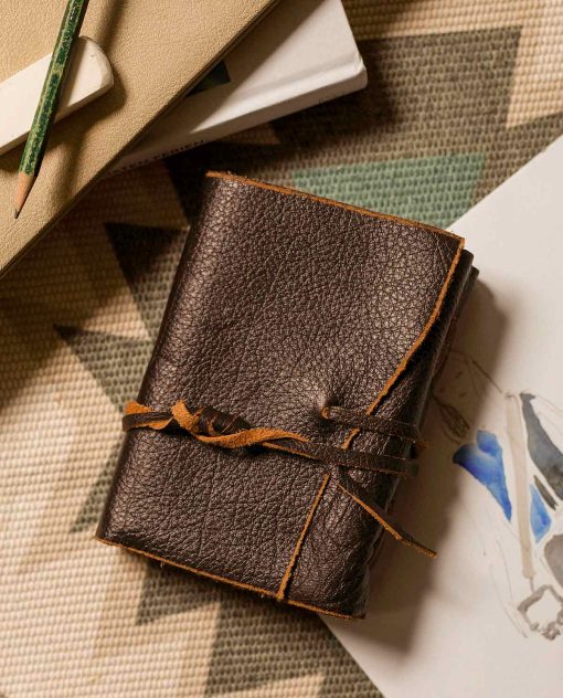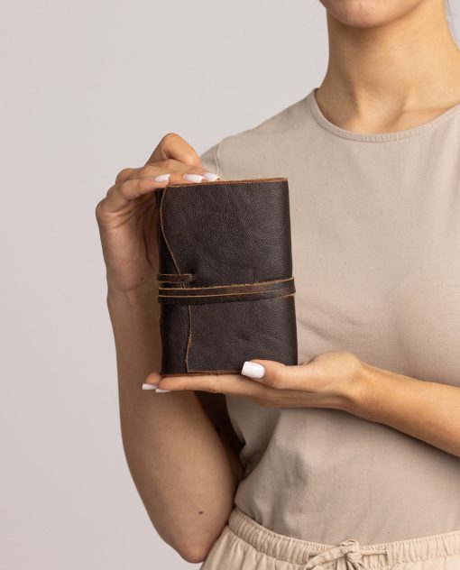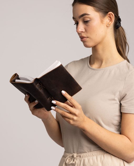 This handy A6 notebook has approximately 200 pages where you can keep your most cherished memories. From travel stories, photos, or notes to thoughts, recipes, or a colorful mix of them all, this notebook is ready for anything. You’ll love its practical size and its design. Our trendy vintage notebook has a buffalo leather cover that stands out for its ruggedness and durability. This stylish book is both functional and robust, ready for any situation. The leather cover and strap have a chic distressed look that adds a final touch of style.