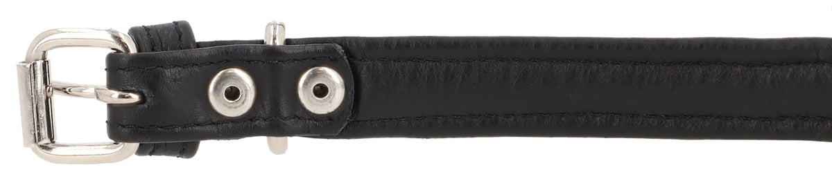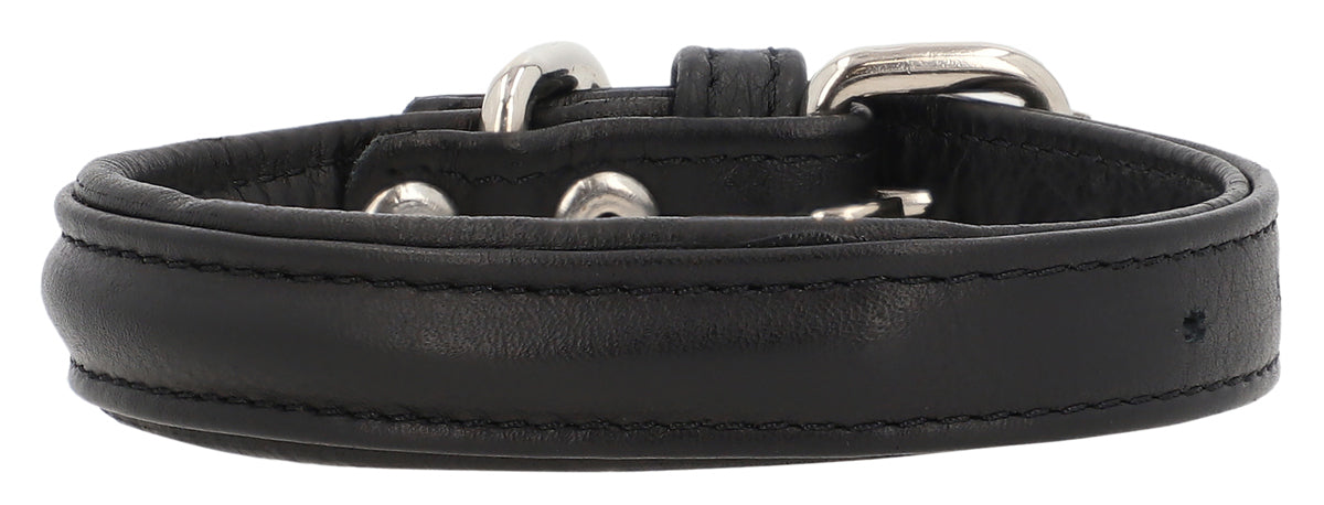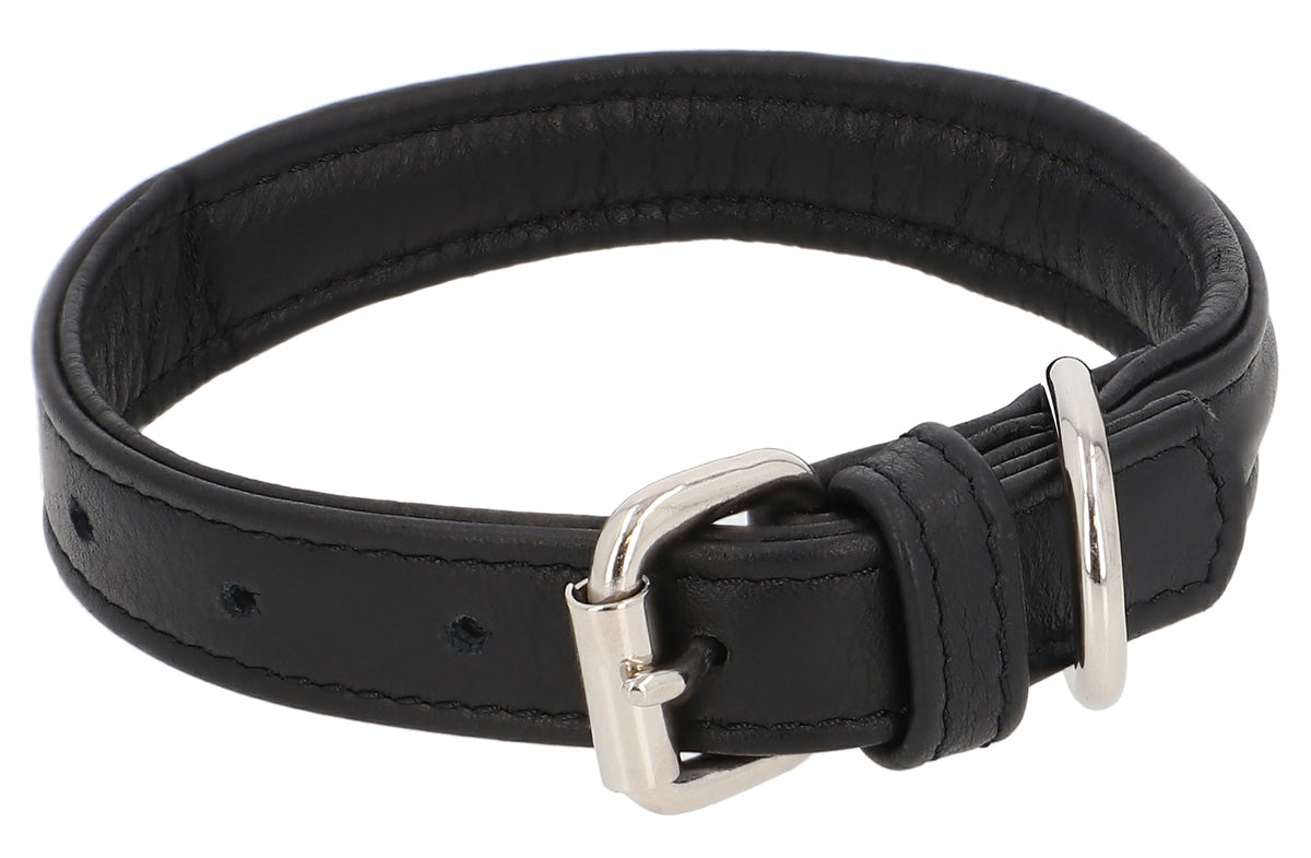 Our leather collar “Anselm” is an elegant yet robust accessory for your beloved four-legged friend. This high-quality black leather collar comes in a timeless design that’s super comfortable for your dog.