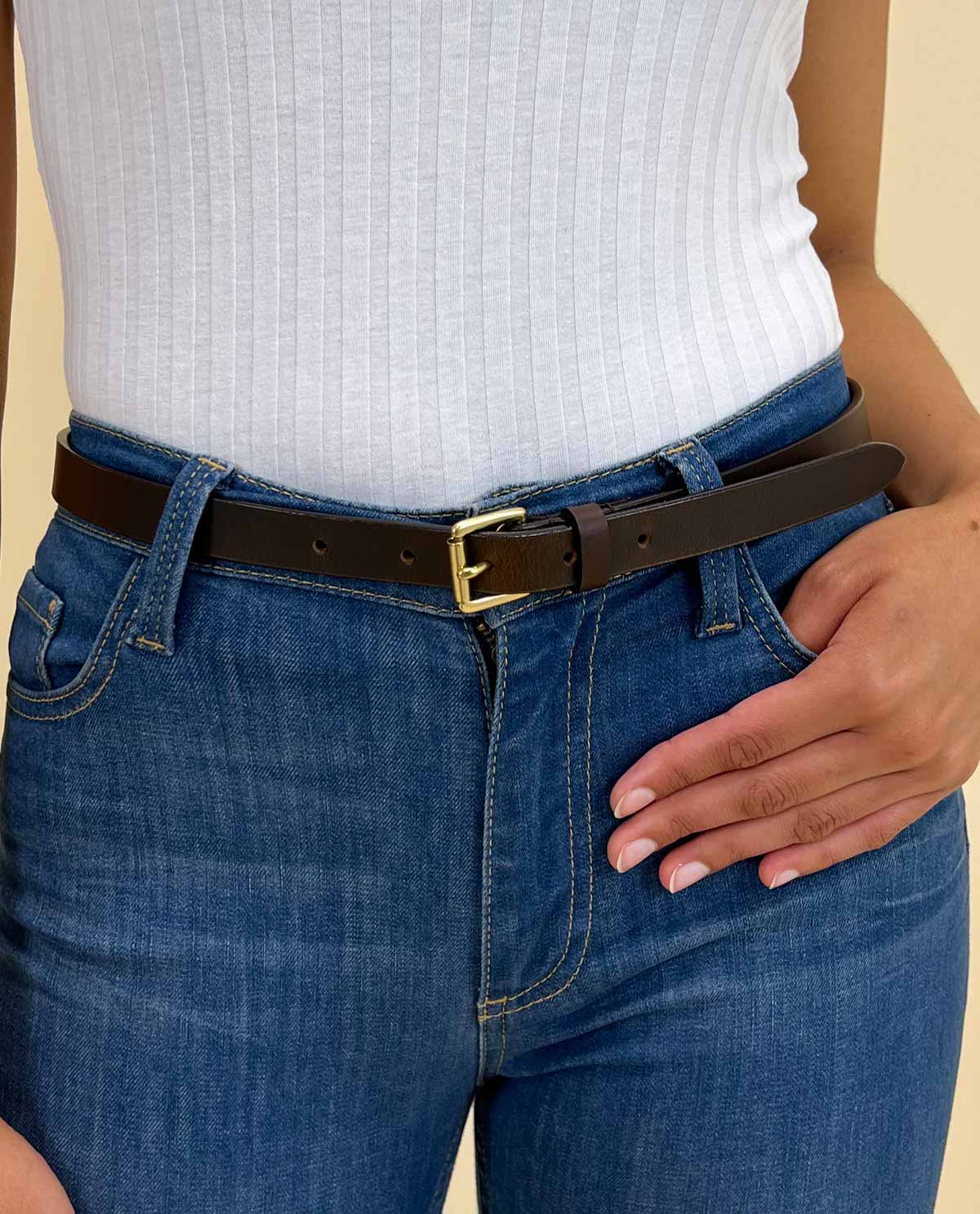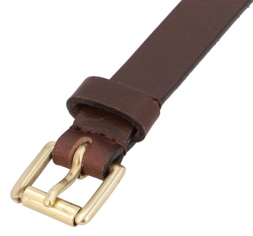 Are you looking for a simple leather belt that adds an understated functional touch to your outfit? Then, say hello to “Birte”. Practical and comfortable, no matter if you wear him with your jeans or your smart pants, that’s our “Birte”. She’s a classic women’s belt. This subtle brown belt, and matching gold buckle, will always support you.