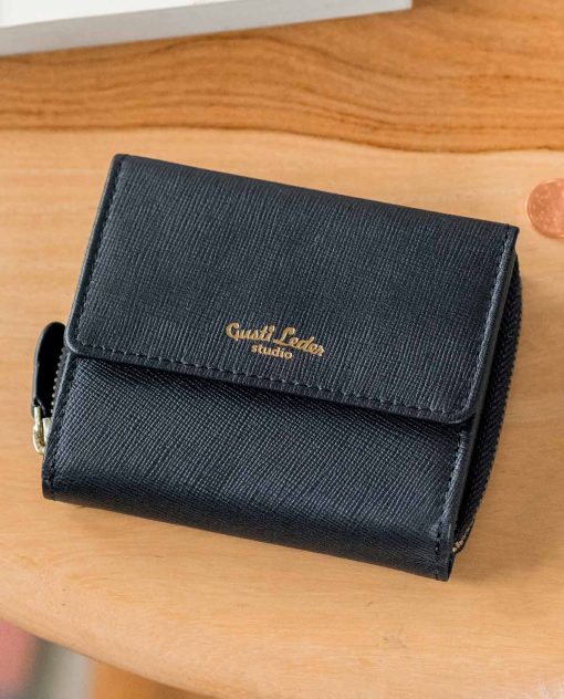 “Brigitta” has a note compartment, folding viewing window, 6 card slots and a coin pocket, secured by a press button, inside. Keep your spare change safe in your pocket. This high-quality processed Saffiano cowhide leather purse is secured by a press button. Pop her in your pocket and hit the road with “Brigitta”.