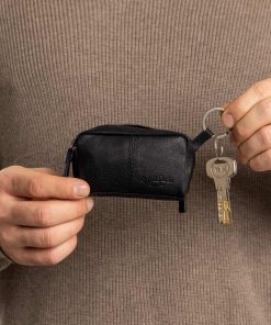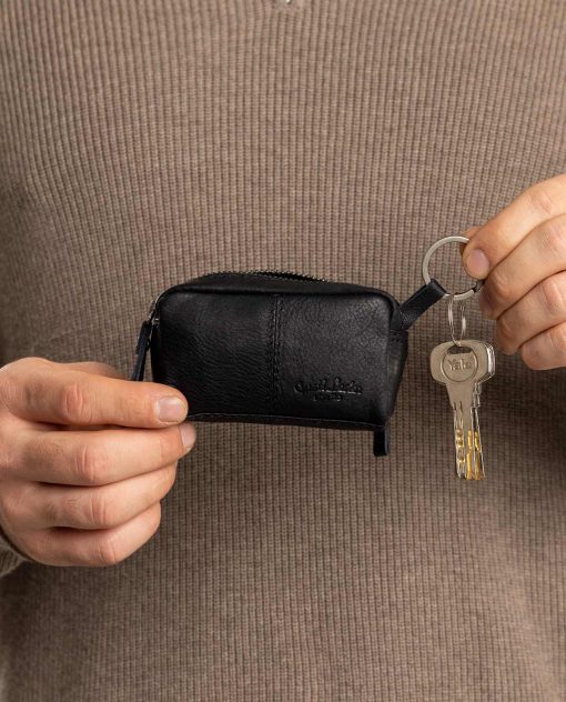 The “Butler’s” compact pocket size makes it particularly handy and versatile. Equipped with two separate, securely lockable compartments, the larger compartment features a practical key ring for your keys, while the smaller compartment is ideal for coins, a shopping token, or folded banknotes. The high-quality genuine leather fabric not only gives the “Butler” support and stability, but also an elegant appearance, making it a stylish companion for your everyday life.