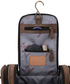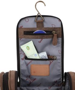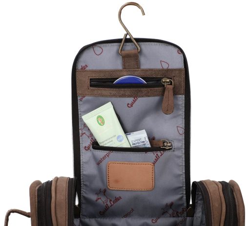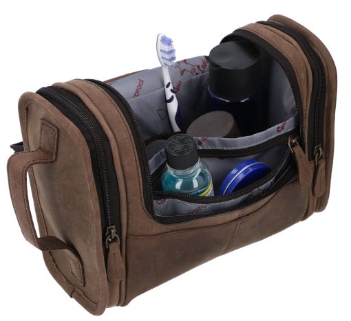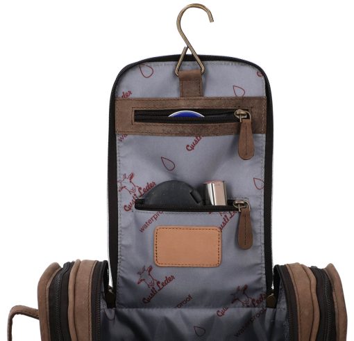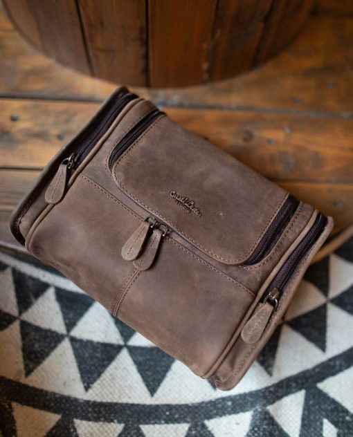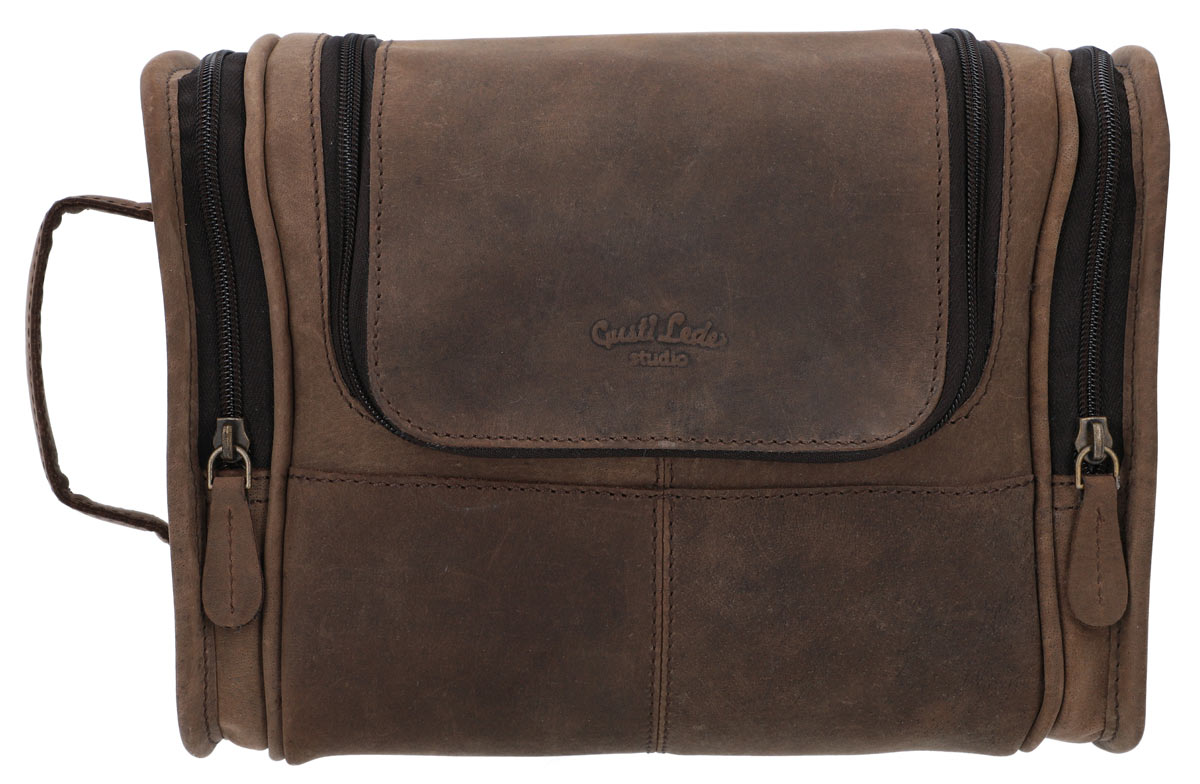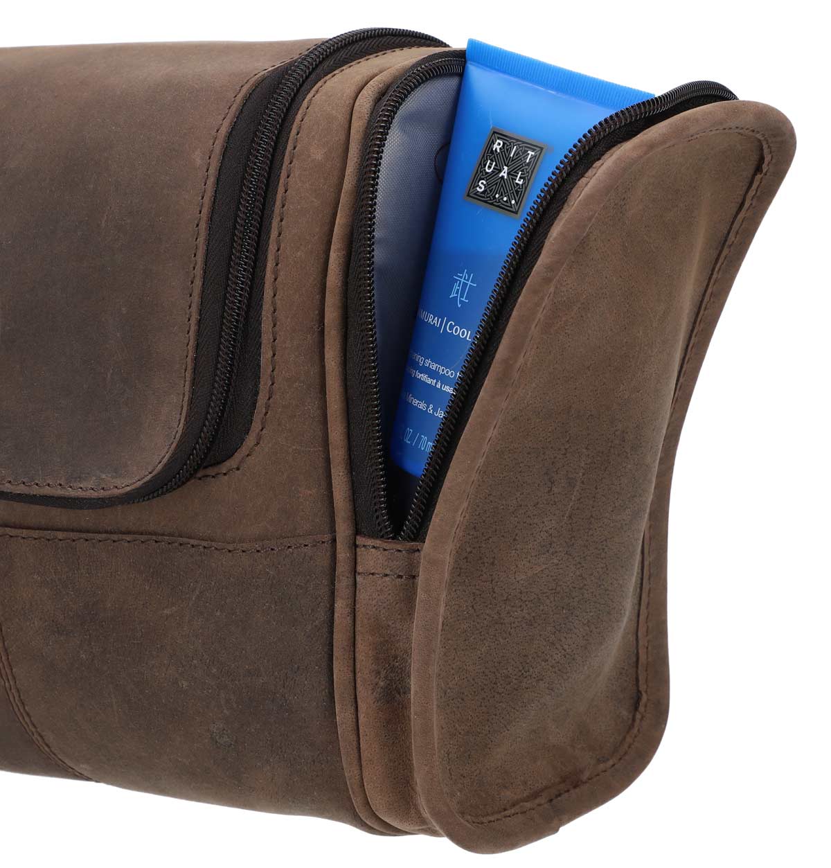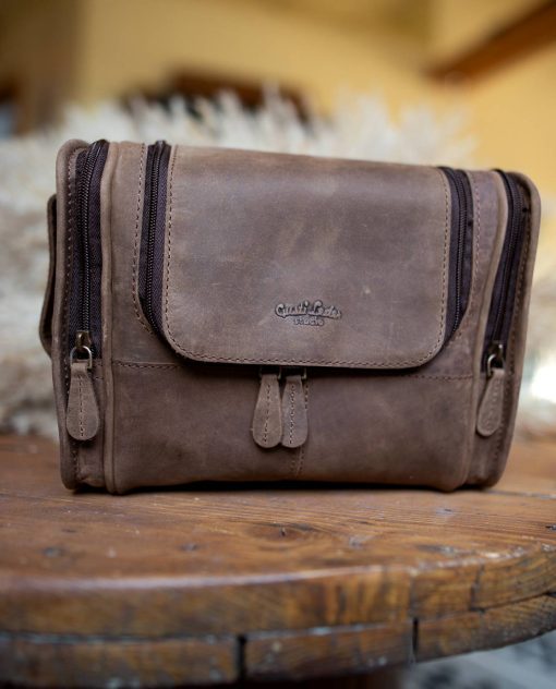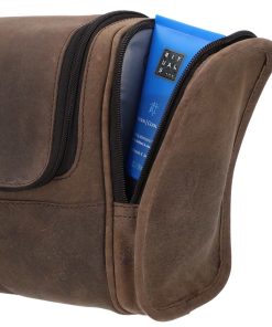 You could play hide-and-seek in this toiletry bag if you were an elf. Super spacious “Chester” has plenty of space for your toiletries. There are multiple pockets inside where you can organise your bathroom essentials. Use the two side pockets for things you need easy access to. Hang “Chester” up using the hanging loop while you’re using him. “Chester’s” lining is water-resistant, so no need to worry about small spillages. We’ve created a Gusti Leather toiletry bag that isn’t just functional, it’s super stylish too. Choose between a stylish brown or elegant black toiletry bag for your next trip away. What more could you want? You’ll never have to compromise in the bathroom again with our spacious toiletry bag “Chester”.