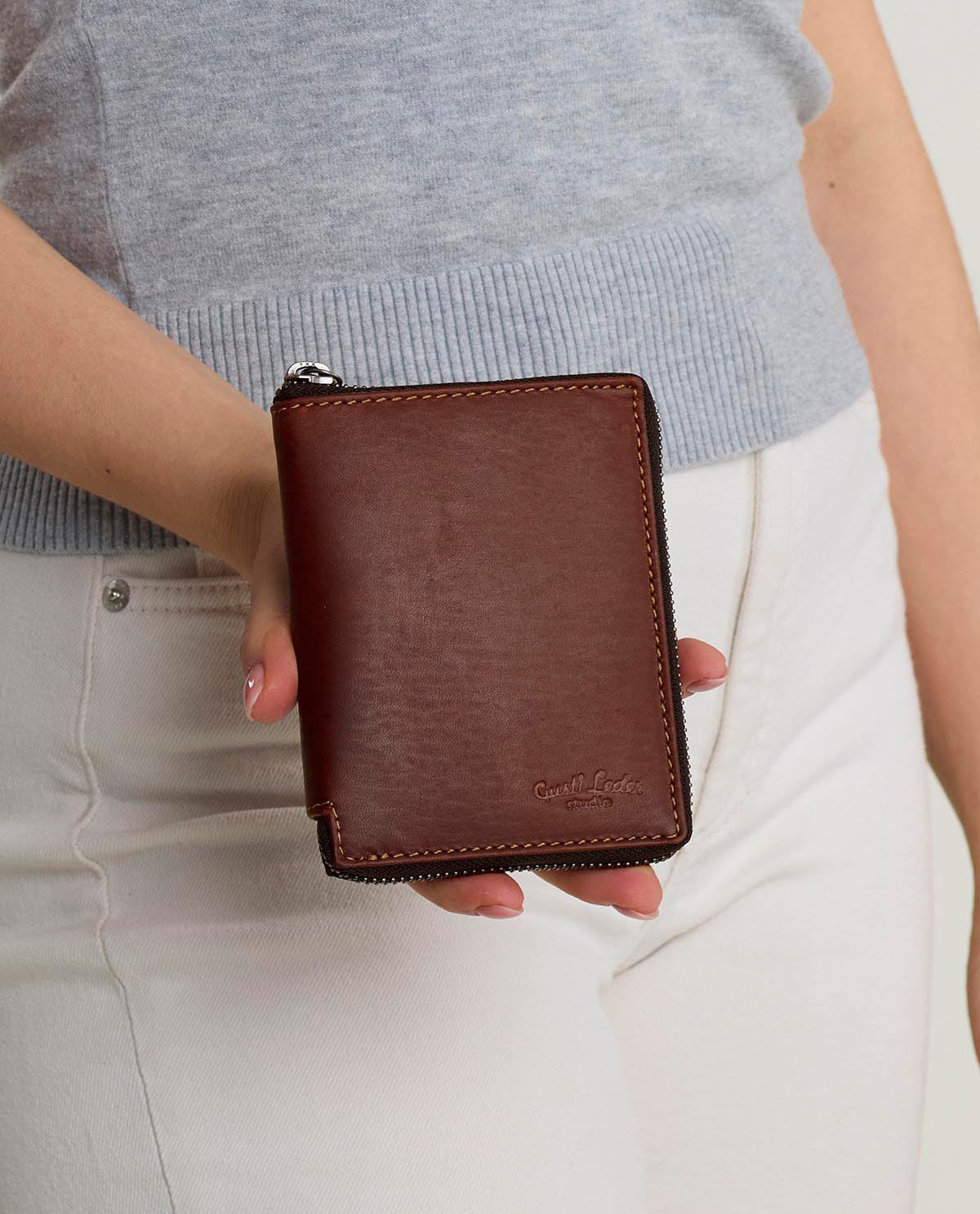 “Darian” is super organised; he has a large note pocket, a separate coin pocket secured with a press button, and three deeper slots. This high-quality tanned cowhide leather wallet will win you over with its compact size, stability, and soft feel. “Darian’s” design is completed by a sleek zip. So, you won’t lose anything when you’re on the go.