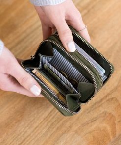 “Dillon” is split into 2 sections inside. There’s room for up to 6 cards on one side. Keep your cash and coins safe in the second compartment. This high-quality tanned cowhide leather purse will win you over with its compact size, stability, and soft feel. “Dillon’s” design is completed by a matching zip. So you won’t lose anything when you’re on the go.