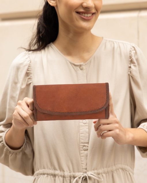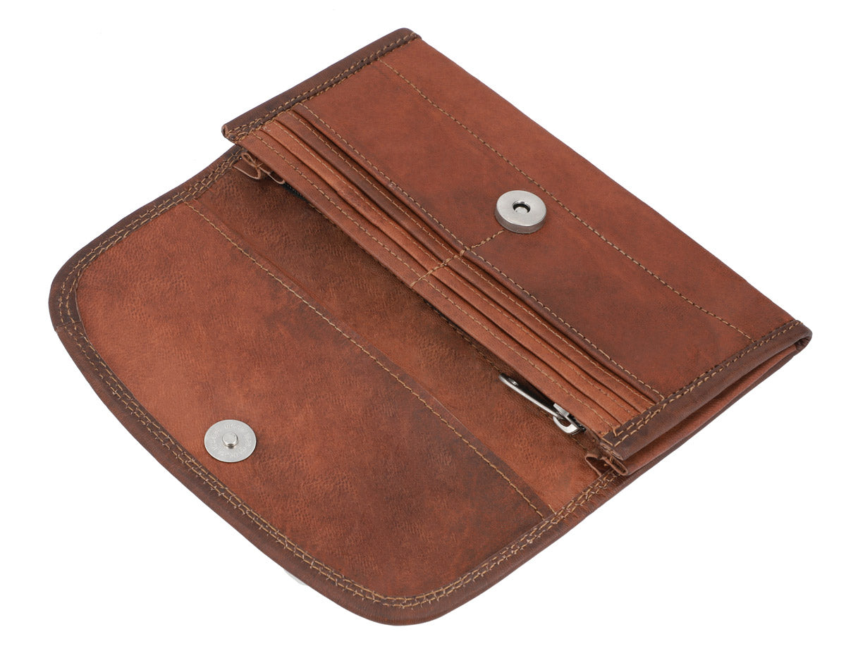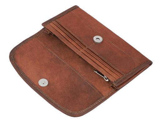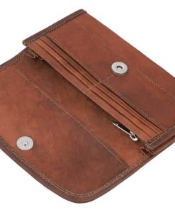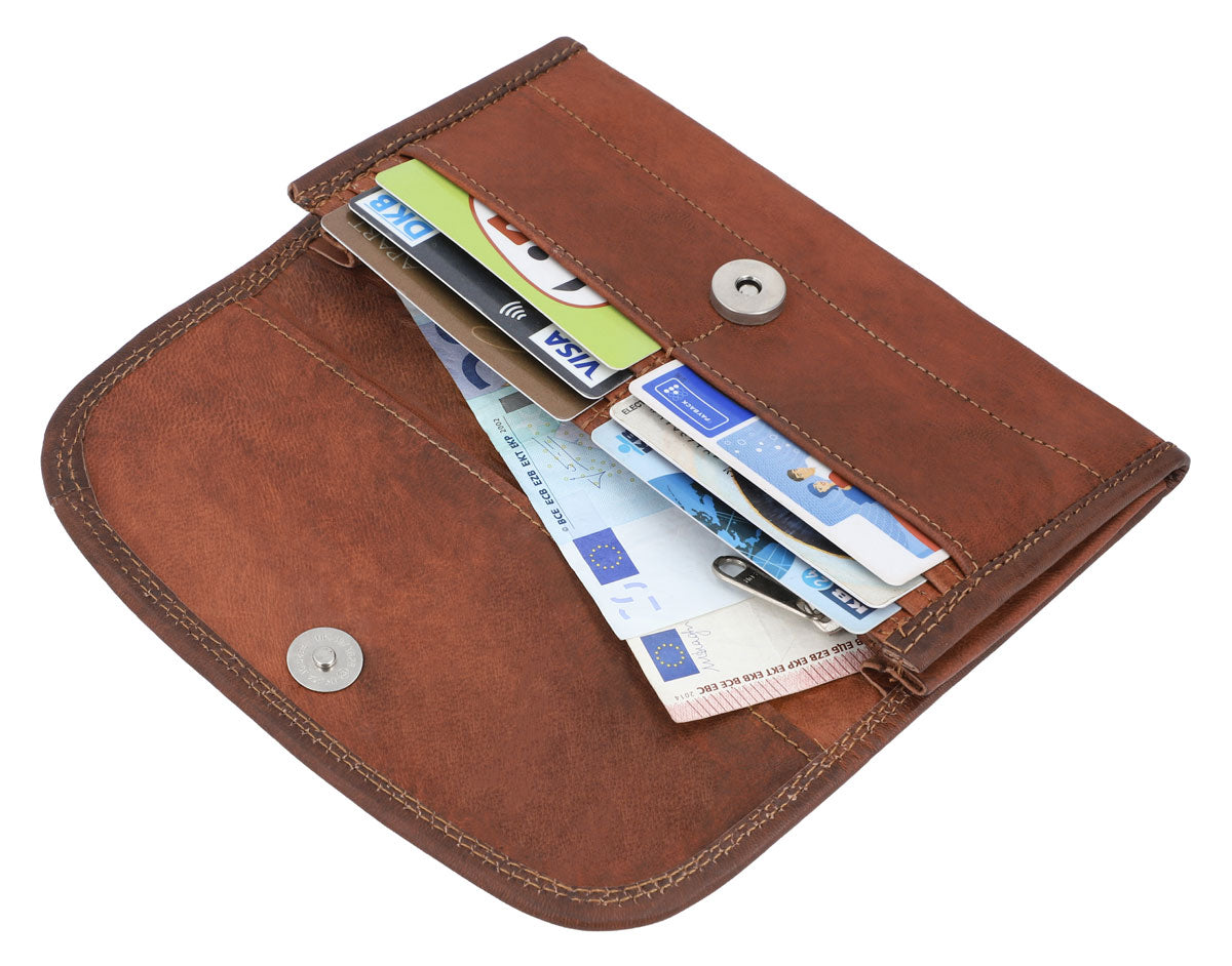 Thanks to “Emma”, you’ll never have to waste time sorting through your wallet again. This spacious purse can be used as an emergency clutch and has plenty of space for your cash and coins, loyalty cards, credit cards, ID, driving license and more. “Emma” has 6 card slots, so you can keep your essentials safe. You’ll find two large pockets for your banknotes behind the card slots. There’s a zipped pocket in the middle where you can keep your spare change safe. This large, rounded envelope-style wallet has an extra pocket and magnetic closure that’ll keep your cash and cards safe and sound. You won’t have to worry about anything spilling out in your backpack when you’re on the go. The soft yet durable goatskin leather used to create “Emma” easily adapts to your bag and adds a unique vintage touch to your life.