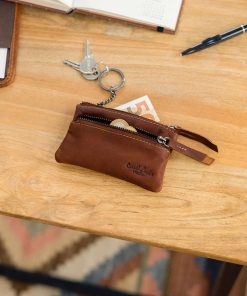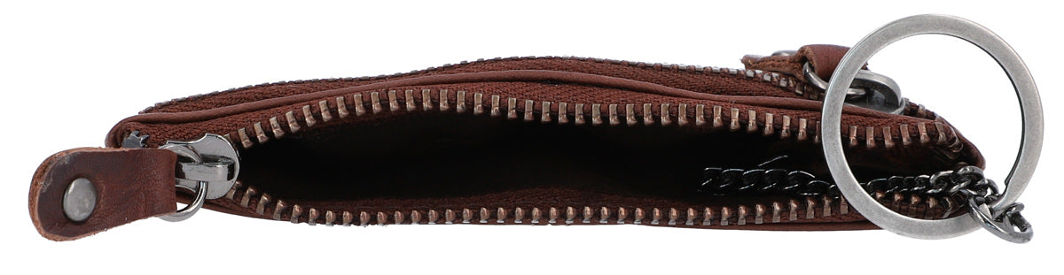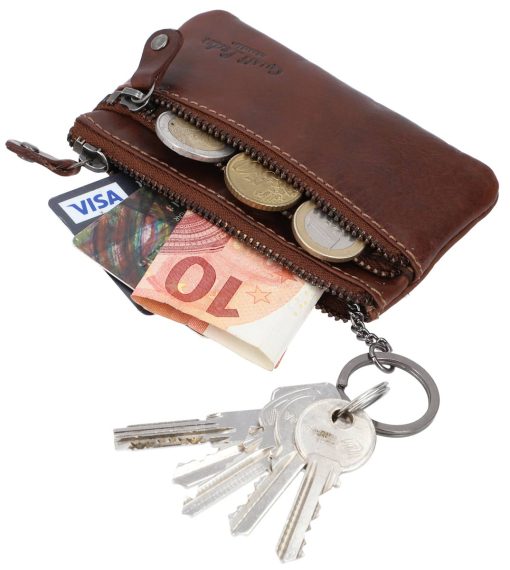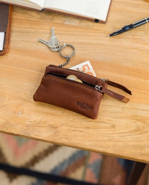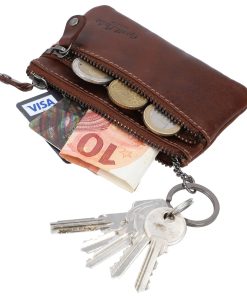 Simple and functional: that’s our keyring “Fia”. This high-quality cowhide leather keyring will win you over with its slim design and silver zips. It has two pockets, so you can keep your essentials organised. Keep your keys and card, or some spare change, safe inside.