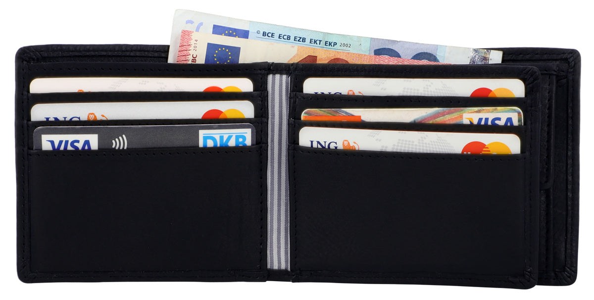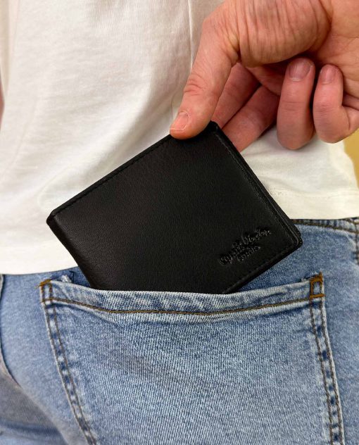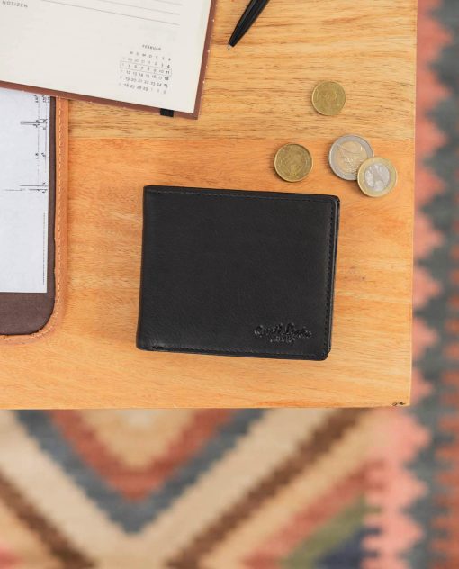 Our classic cowhide leather wallet “Foster” will be a lifelong companion. Open him up to find six card slots for your credit cards as well as a transparent pocket for your I.D. There’s a separate note compartment and coin pocket for your cash. Secure your change using a sturdy press button.