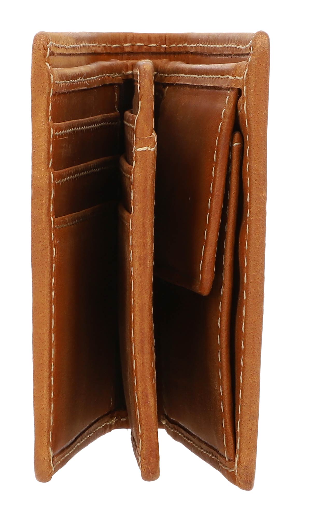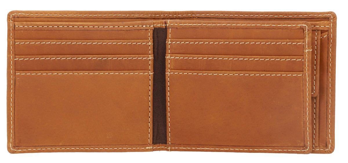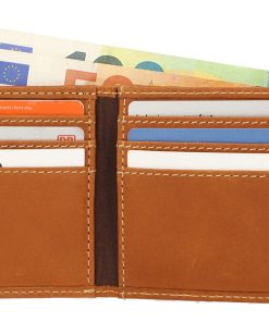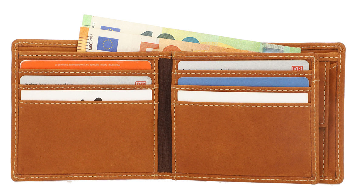 Our wallet “Foster” has a classic look. Made of robust buffalo leather, “Foster” is a lifelong companion. Quickly opened, you find at least six compartments for your cards. Your ID can be placed in a transparent pocket. A separate compartment holds your banknotes, and naturally, there is also a coin pocket, securely closed with a snap button.