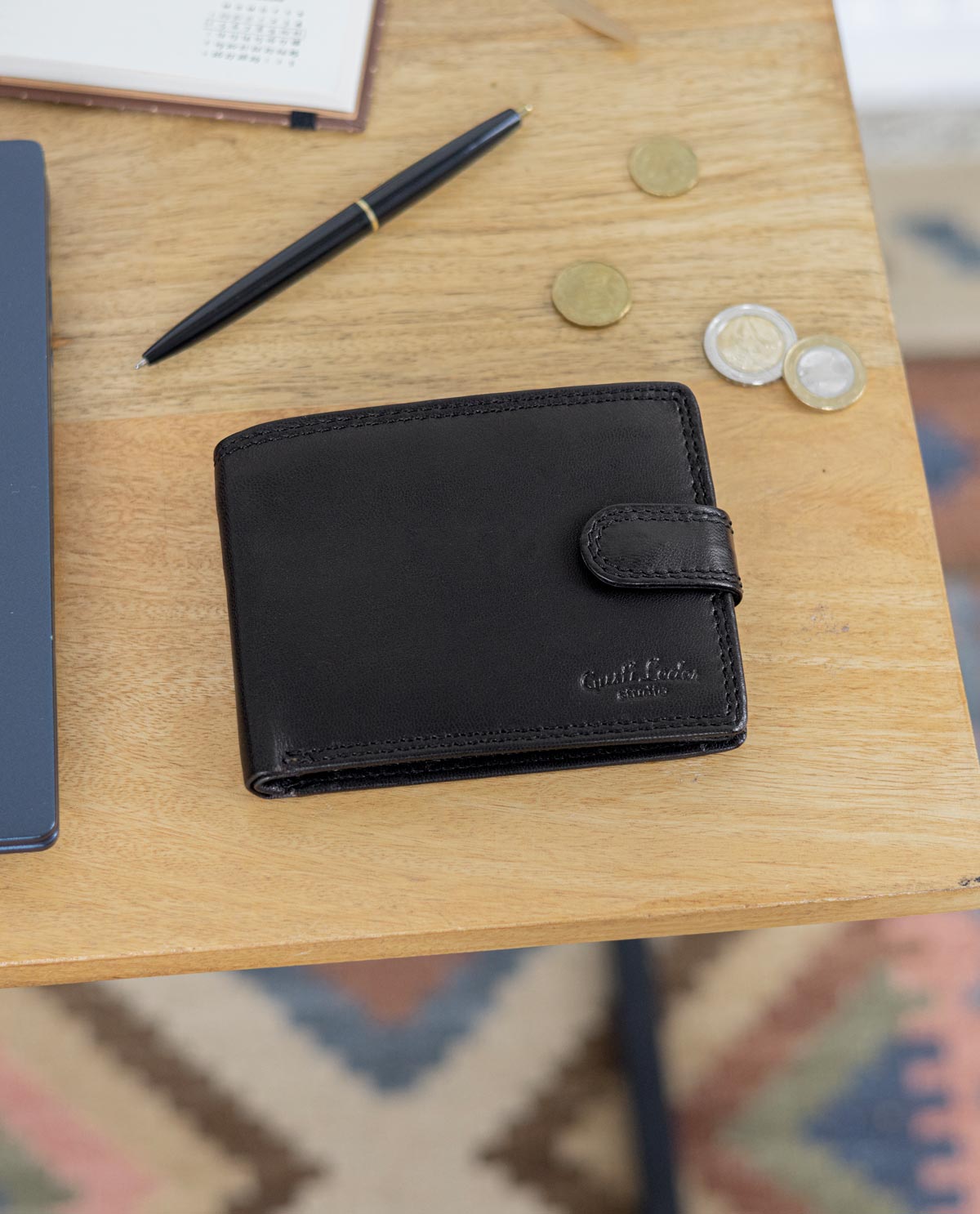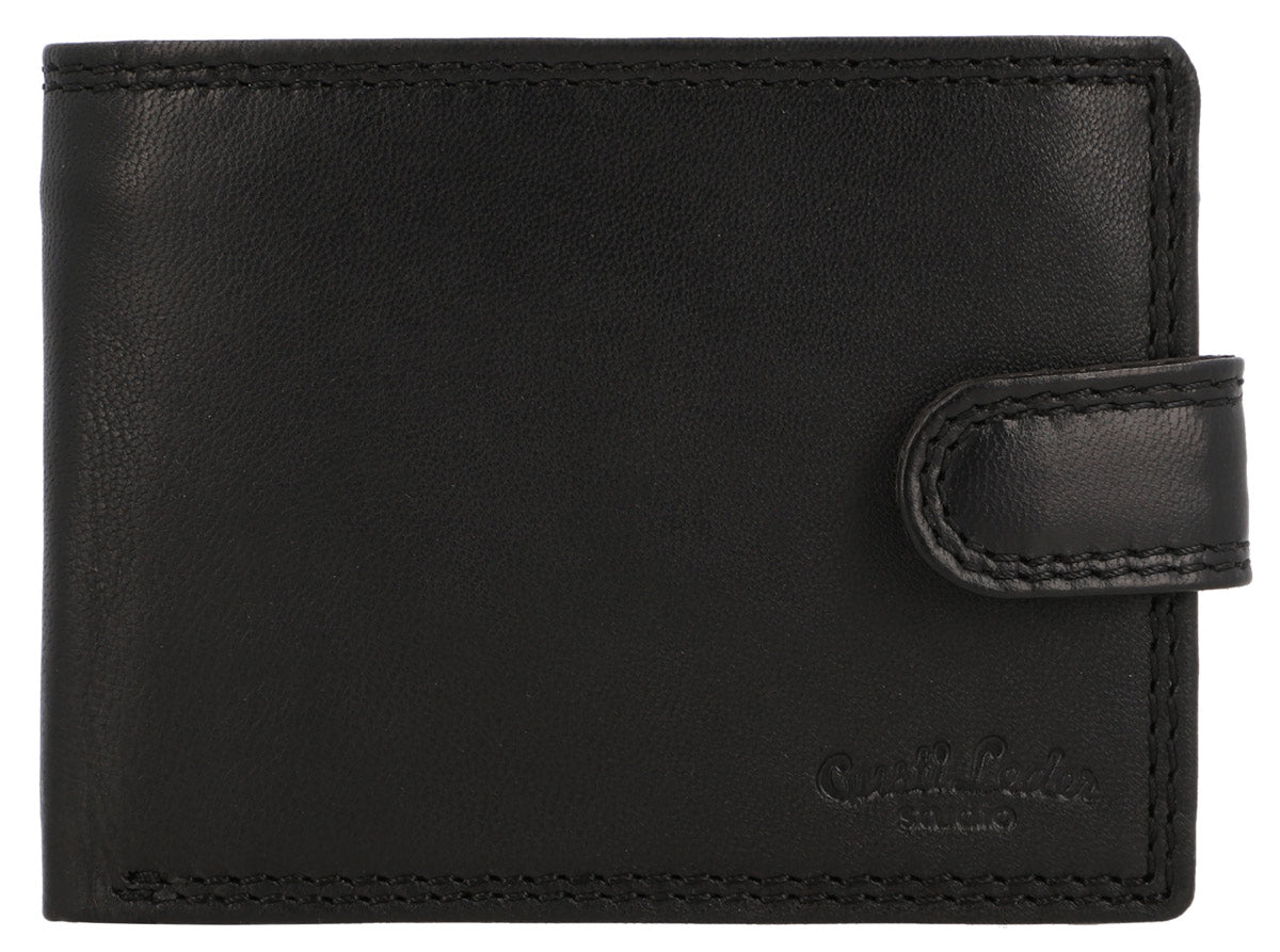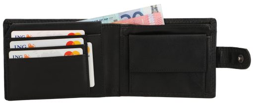 Inside, you are offered maximum comfort in functionality. The clever organization system helps you have your most important cards, IDs, coins, and bills quickly and easily at hand. Where at first glance there doesn’t seem to be much space, there is more than you think. Folding techniques and compartments allow you to store everything you imagine. A window with dimensions of 10.5 x 6.5 cm allows you, for example, to show your monthly pass without having to take it out first. The buffalo leather is high-quality processed and extremely robust. It offers you and your wallet great shape stability and promises that you will enjoy this great product for a long time. A snap button connected with a tab closes the wallet simply and uncomplicatedly.
