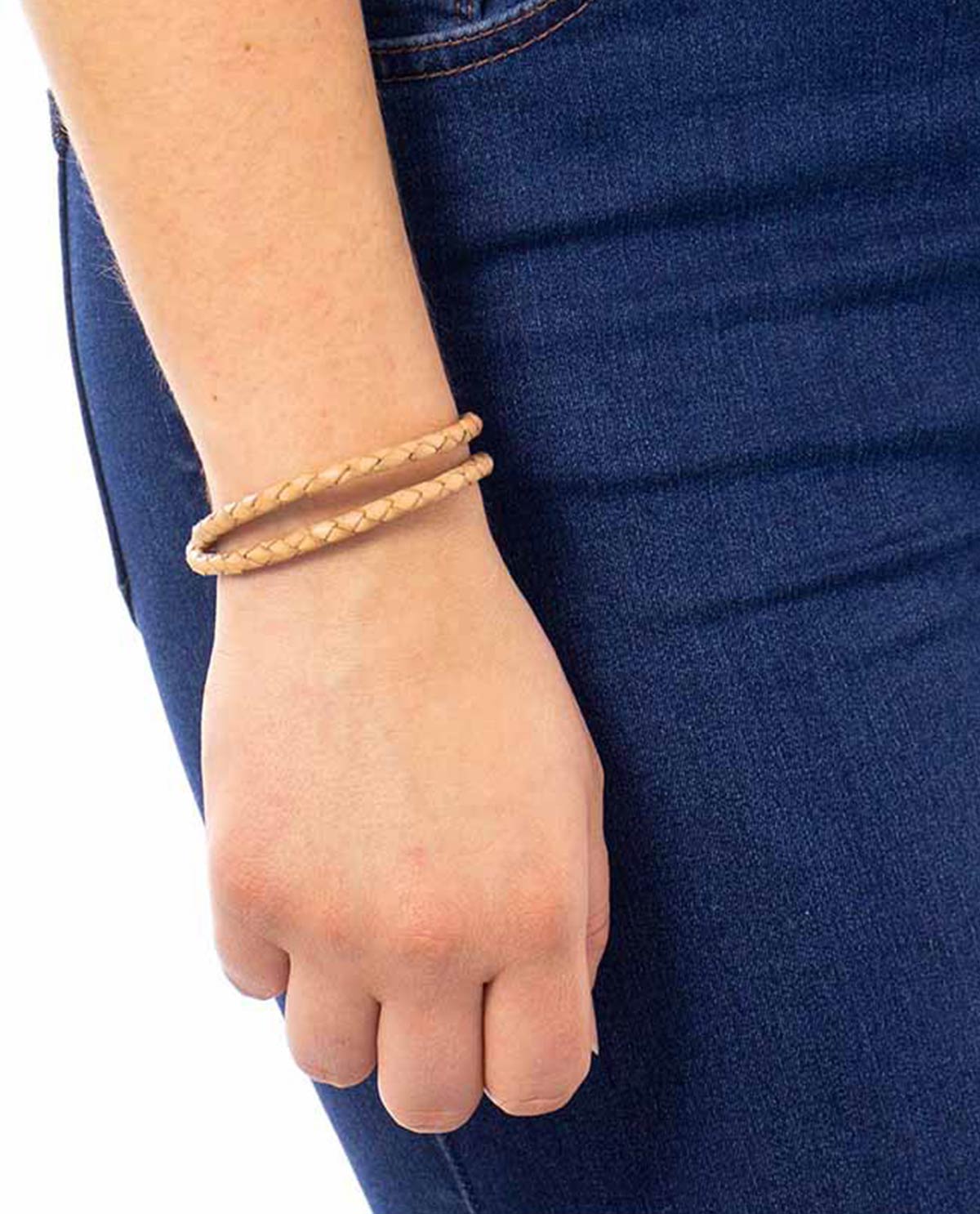 This calf leather bracelet is a simple and discreet piece of jewellery. A simple, discreet accessory that sparkles with its vintage flair! You’ve found the perfect discreet bracelet with Imke. She has a little something extra and brings the right touch of casual yet discreet to any outfit. The twist-lock makes it easy to fasten this bracelet. Perfect for cool surfer-style looks that bring the beach right into your house! The leather is 3.5mm thick. It comes in a unisex size measuring 36cm so that you can wrap the bracelet around your wrist twice.