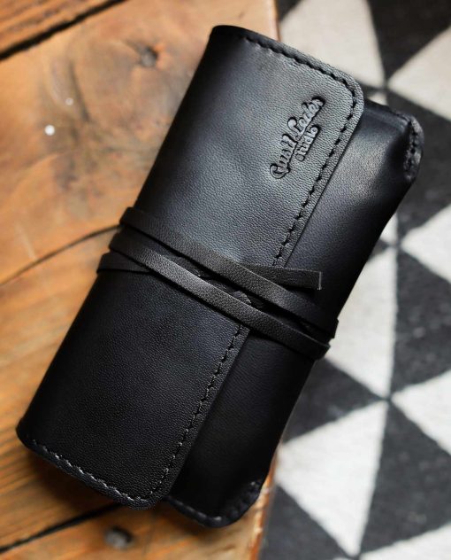 This practical high-quality finished leather pouch is the perfect balance of stability and flexibility, thanks to its material, making it an indispensable everyday companion. Its sophisticated yet subtle wrap closure makes sure that your pouch stays safe and secure when you’re on the go, keeping your belongings under control at all times.
