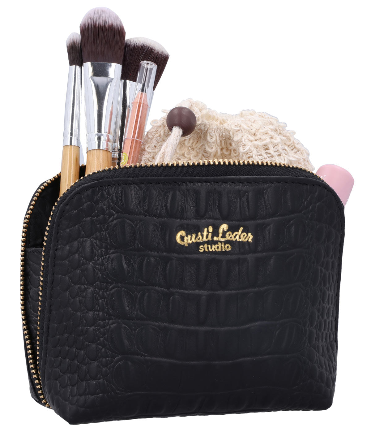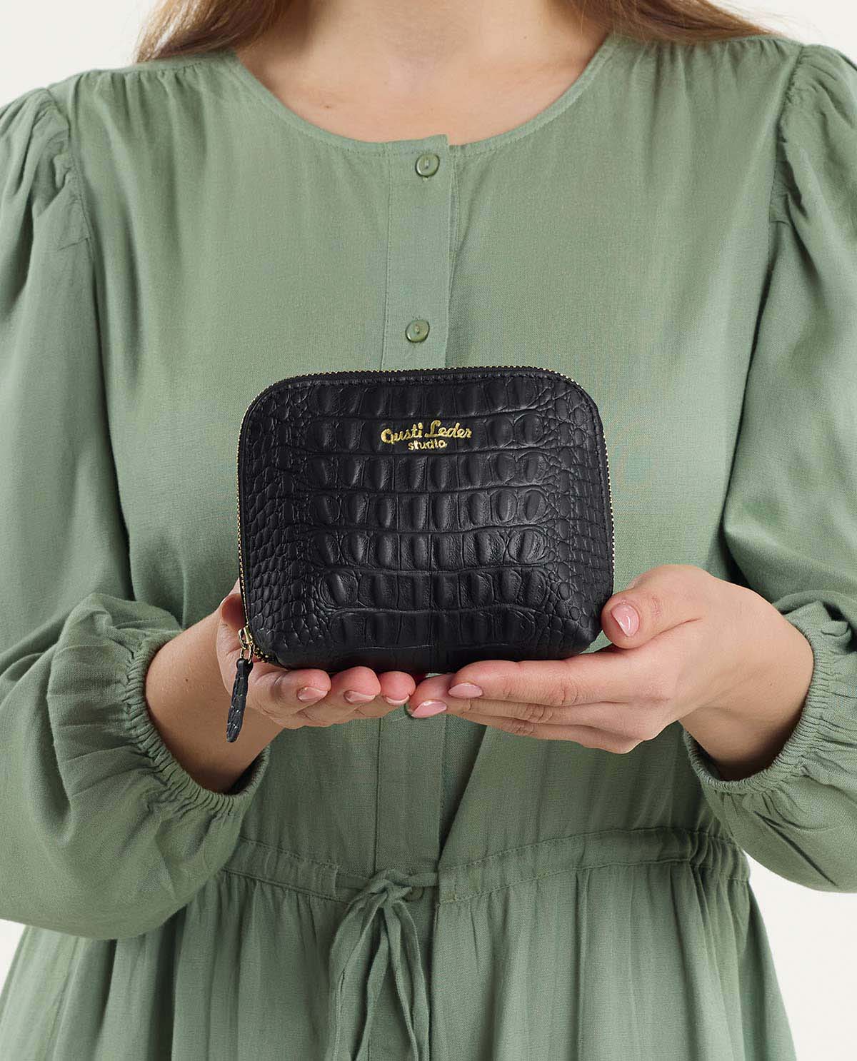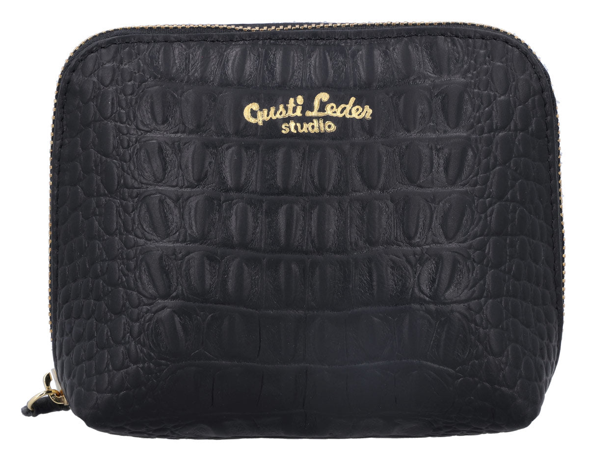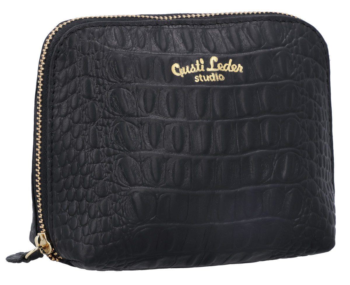 Do you often lose track of things in your bag and spend ages looking for your mascara or other small items? Then “Leo” is just right for you! This beautiful little pouch ensures order in the endless depths of your bag and impresses with its stylish design. Made from high-quality black cowhide leather, it exudes a noble elegance that effortlessly fits into your everyday life. The all-around accent zipper emphasizes the classic look and makes “Leo” a stylish companion – discreet but still an eye-catcher.