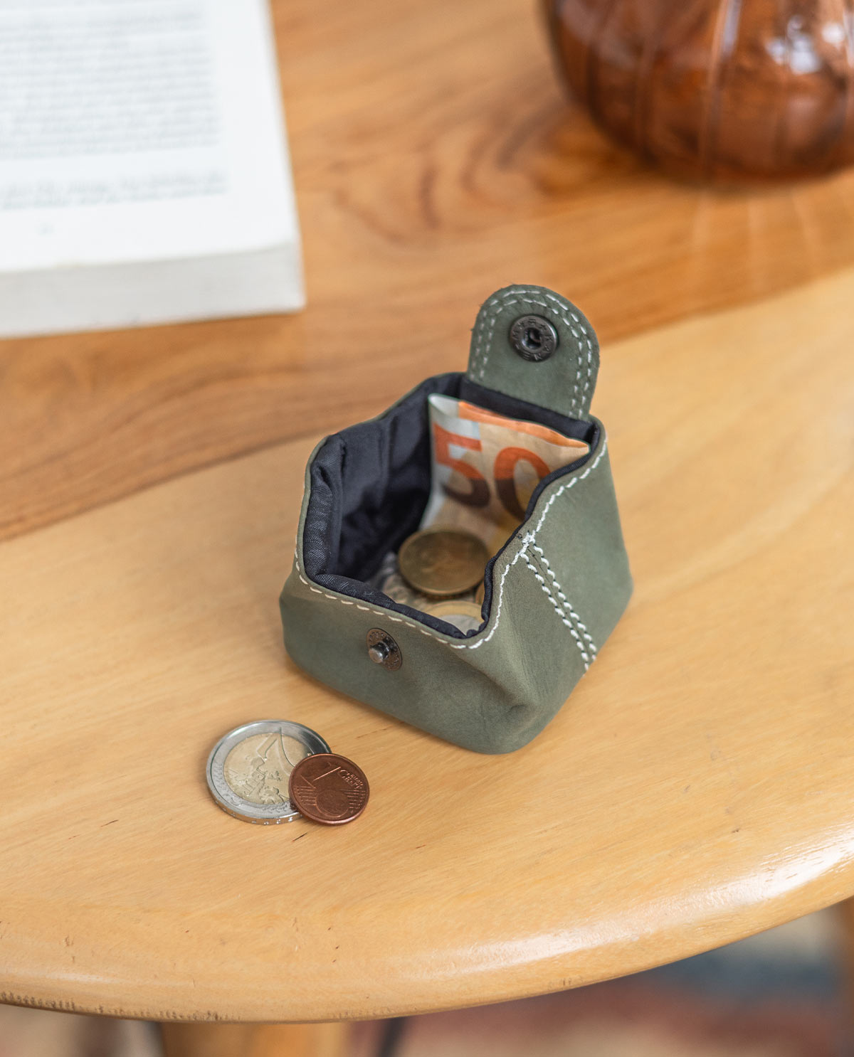 A petite purse is super handy at large public events. “Linus” is the perfect companion for any occasion – from folk-music festivals to seeing your favourite band live. It doesn’t get any smaller than this! This handy and practical coin purse keeps your coins safe in your pocket, helping you avoid losing your money all over the floor. This petite coin purse is made from high-quality finished leather and is the perfect companion for any event. Keep your coins secure using the metal press button – so you can dance the night away and not have to worry about losing your cash!