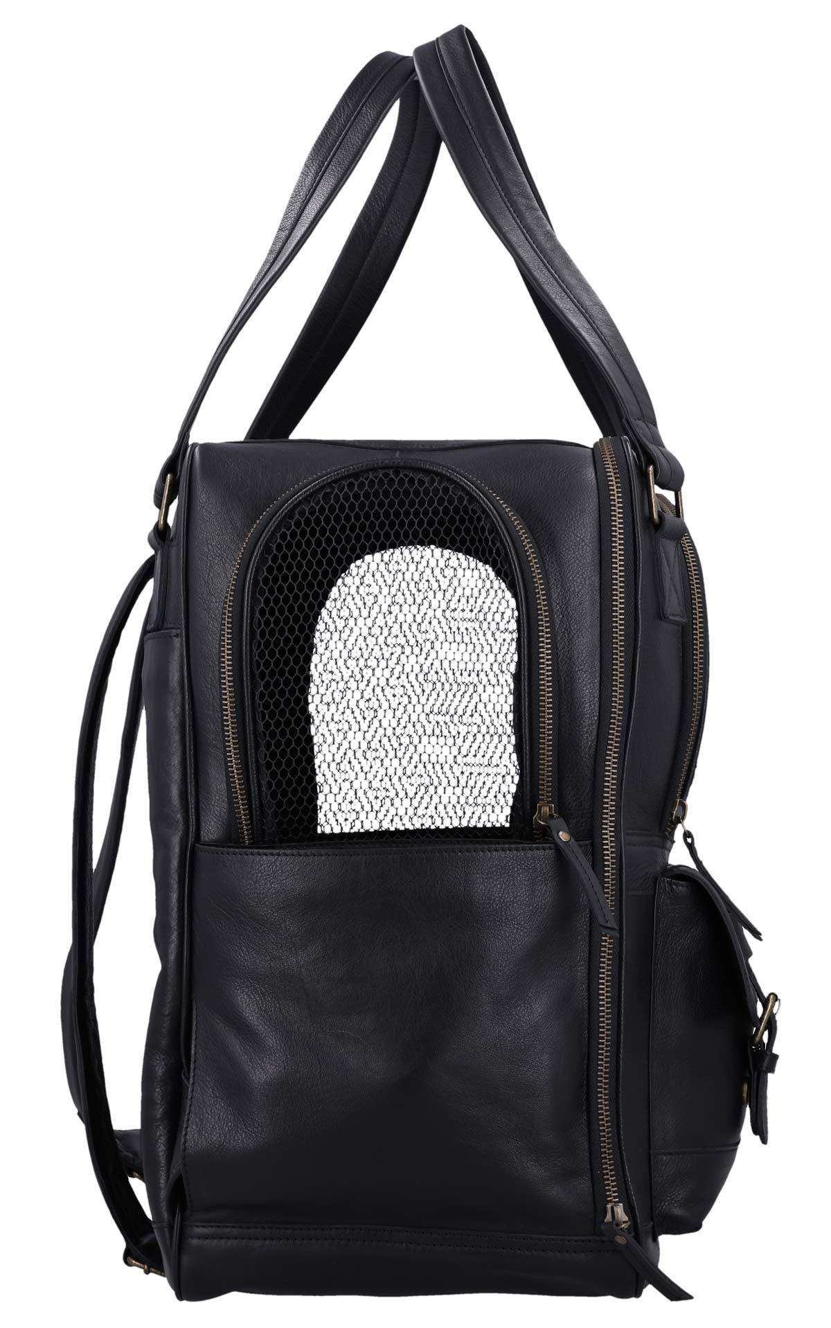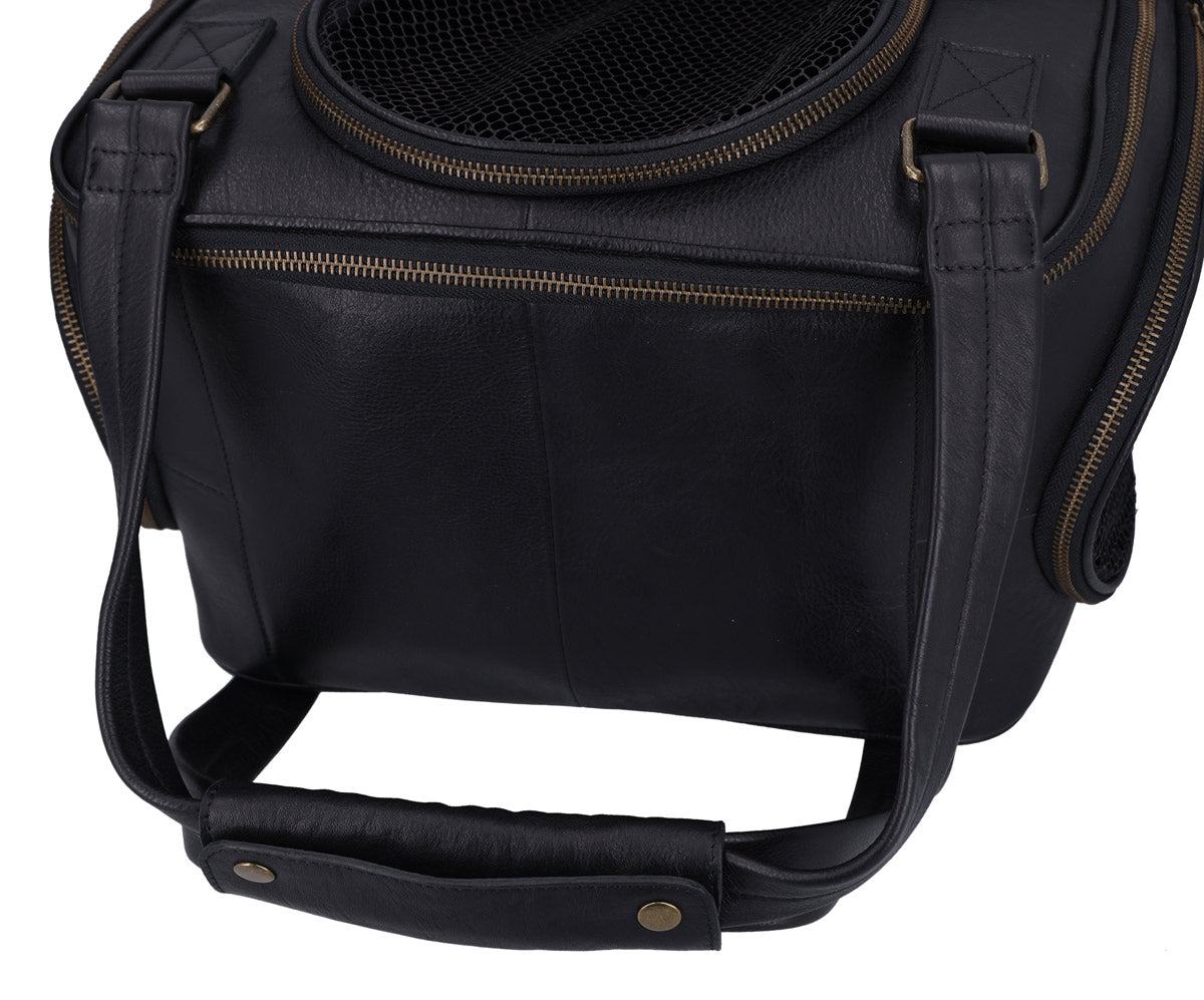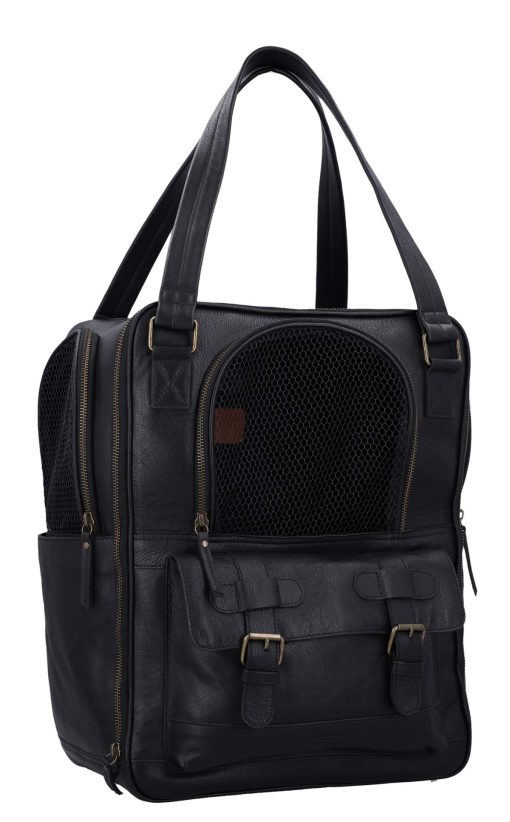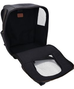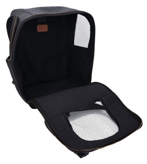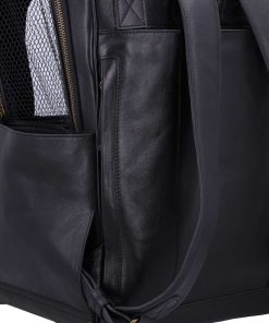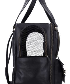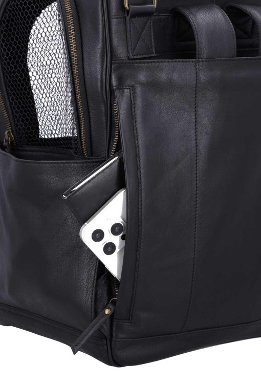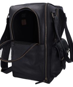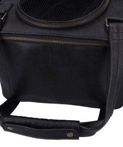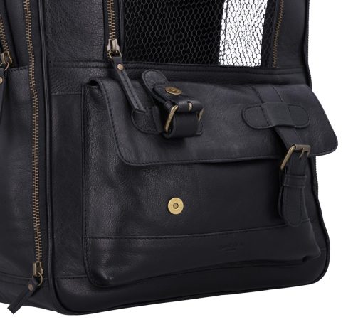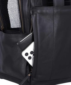 The “Madox” is the perfect solution for all pet owners who want to transport their pets safely and stylishly. This pet transport backpack made of high-quality black leather combines functionality with an elegant design. You can carry the backpack either as a backpack or a bag, offering you maximum flexibility in everyday life. The thoughtful construction allows your pet to breathe easily, as parts of the bag are equipped with mesh fabric that ensures good ventilation.