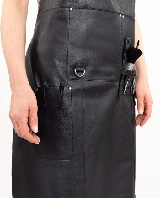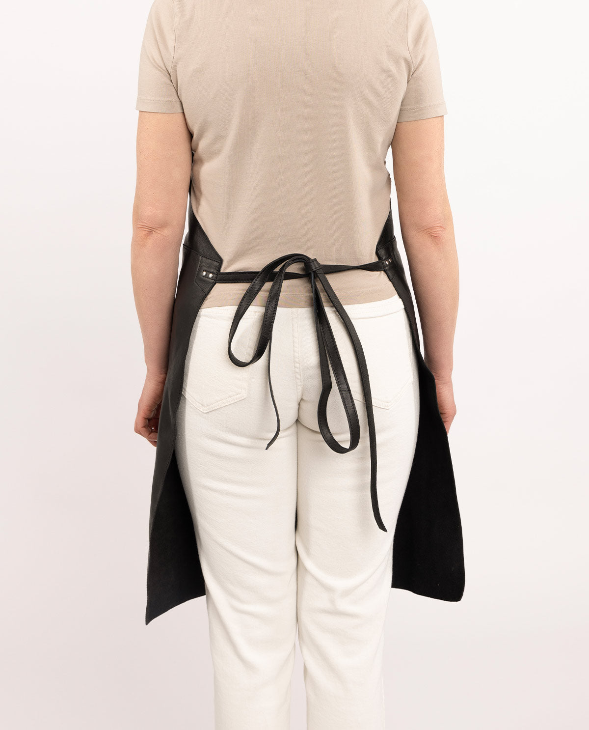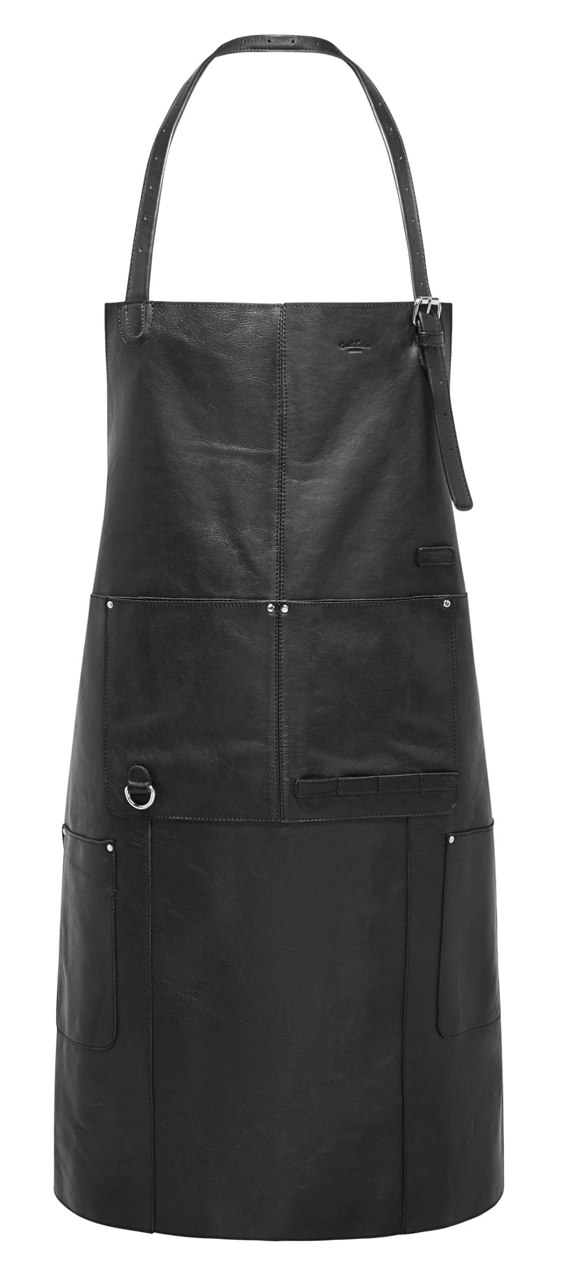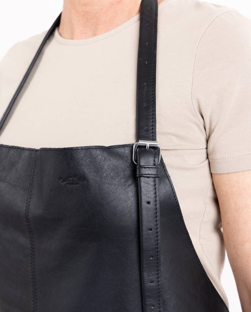 OUr high-quality leather apron “Mattheo” will impress you with its design and functionality. This sturdy black leather apron protects you from dirt and splashes when you’re cooking, grilling or doing other messy activities. The durable leather protects you during messy tasks, while the timeless design elevates your look.