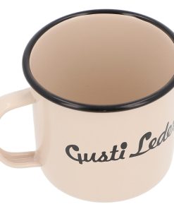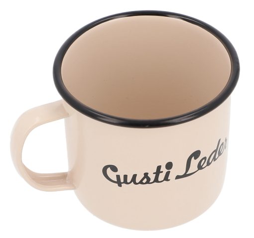 Add a touch of elegance to your morning coffee with our Gusti Leather metal mug. This classic white mug has a distinctive black border and is decorated with Gusti’s iconic logo. It adds a stylish feel to every sip you take. It’s perfect to use at the office or during your morning ritual at home.