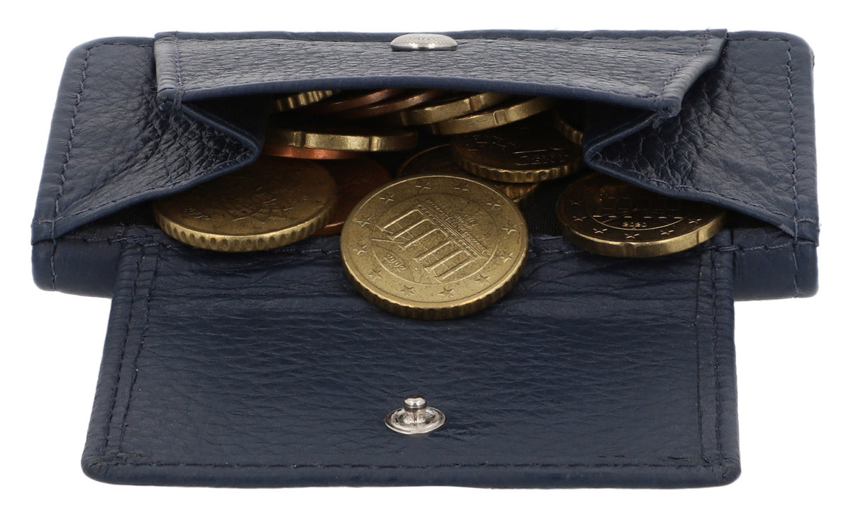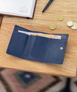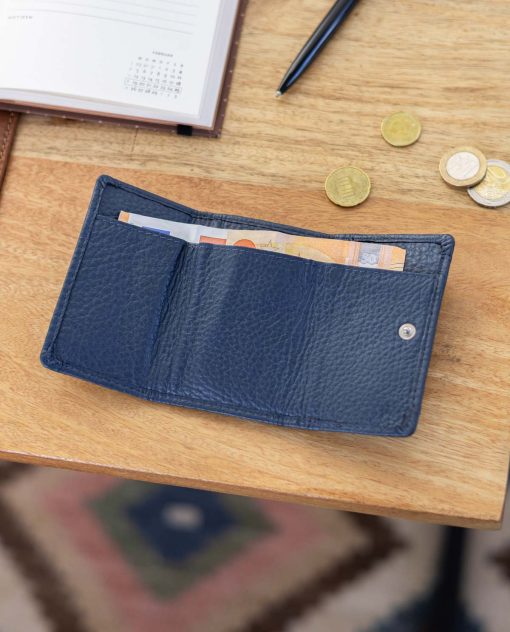 Don’t be fooled by its size. This blue leather purse is surprisingly spacious. It’s well organised inside and has a practical coin pocket that you can secure with a press button as well as a large note compartment. It’s an indispensable accessory when you’re on the go.