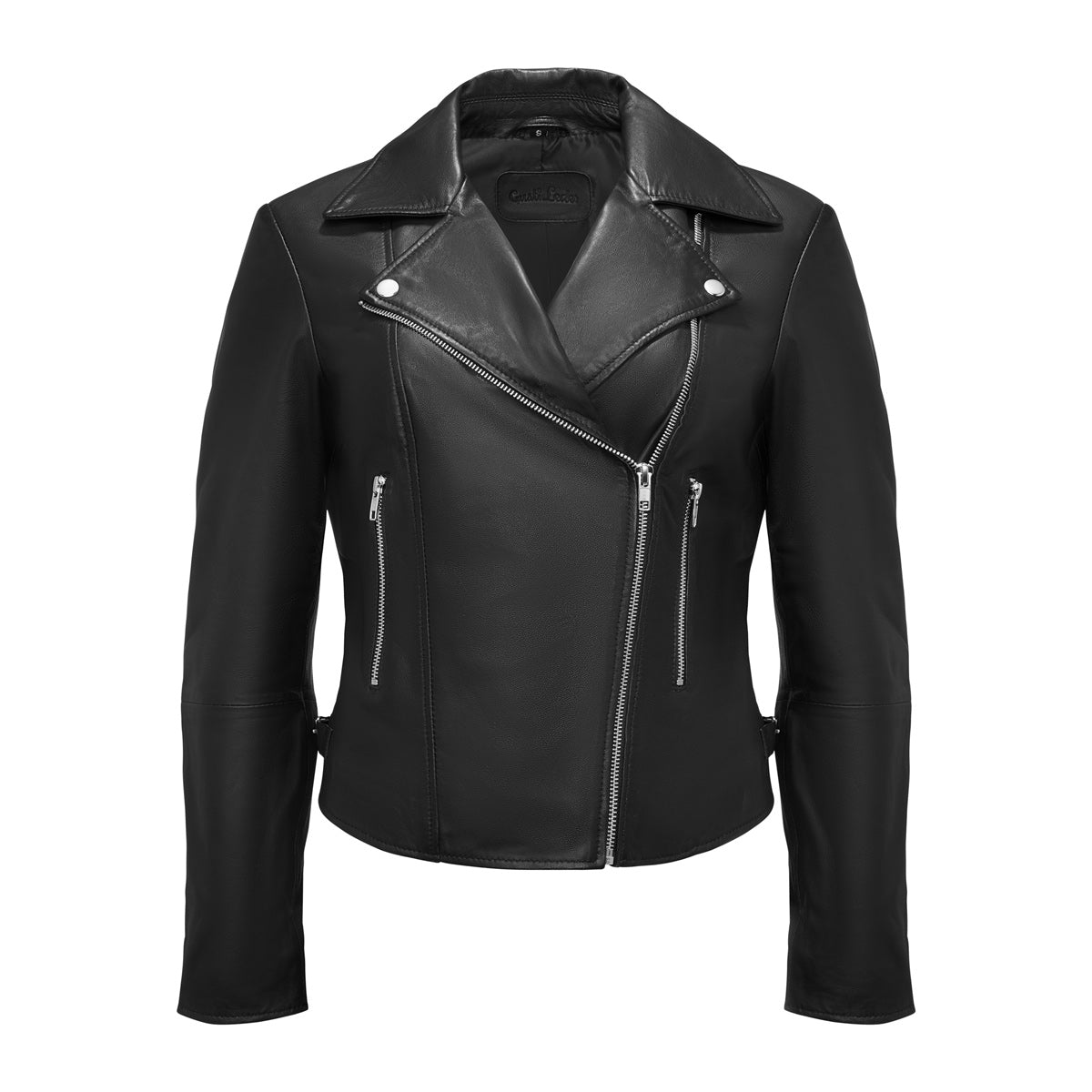 A classic with a modern twist – the “Ova” biker jacket made of black genuine leather adds a striking, stylish touch to your outfit. Whether you pair it with jeans and boots or layer it over a dress, this leather jacket makes a fashion statement. The high-quality leather feels pleasantly soft and develops a unique patina over time – just as unique as you are.