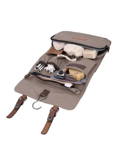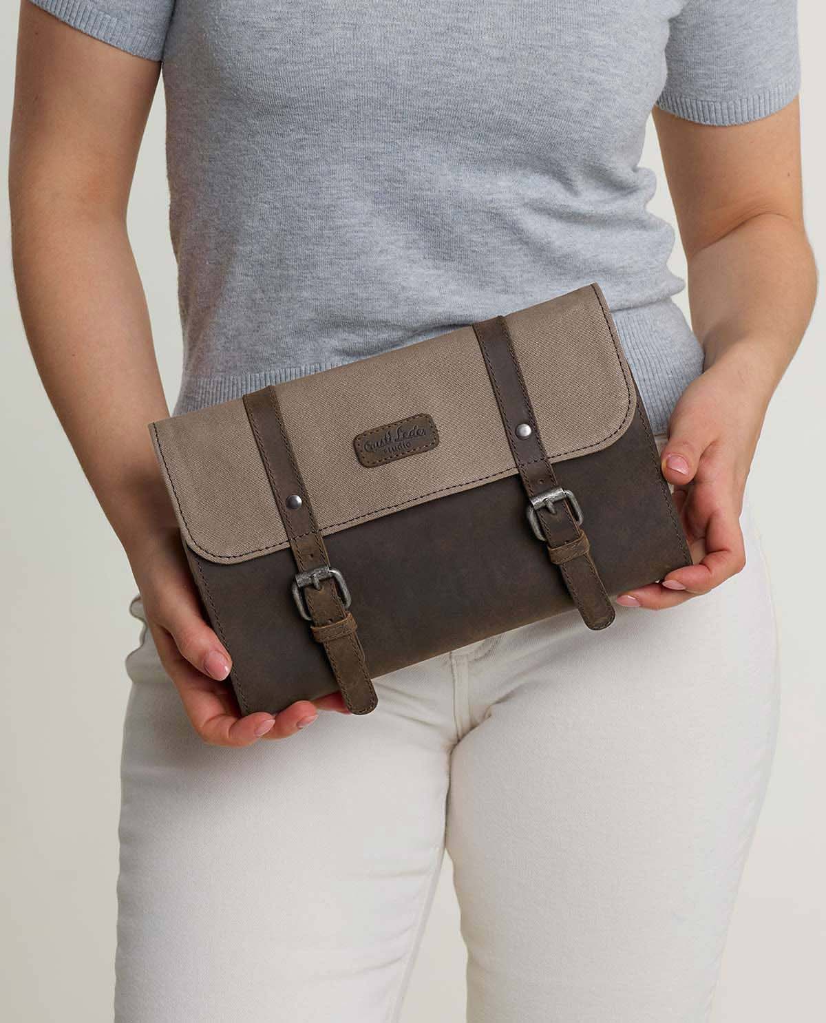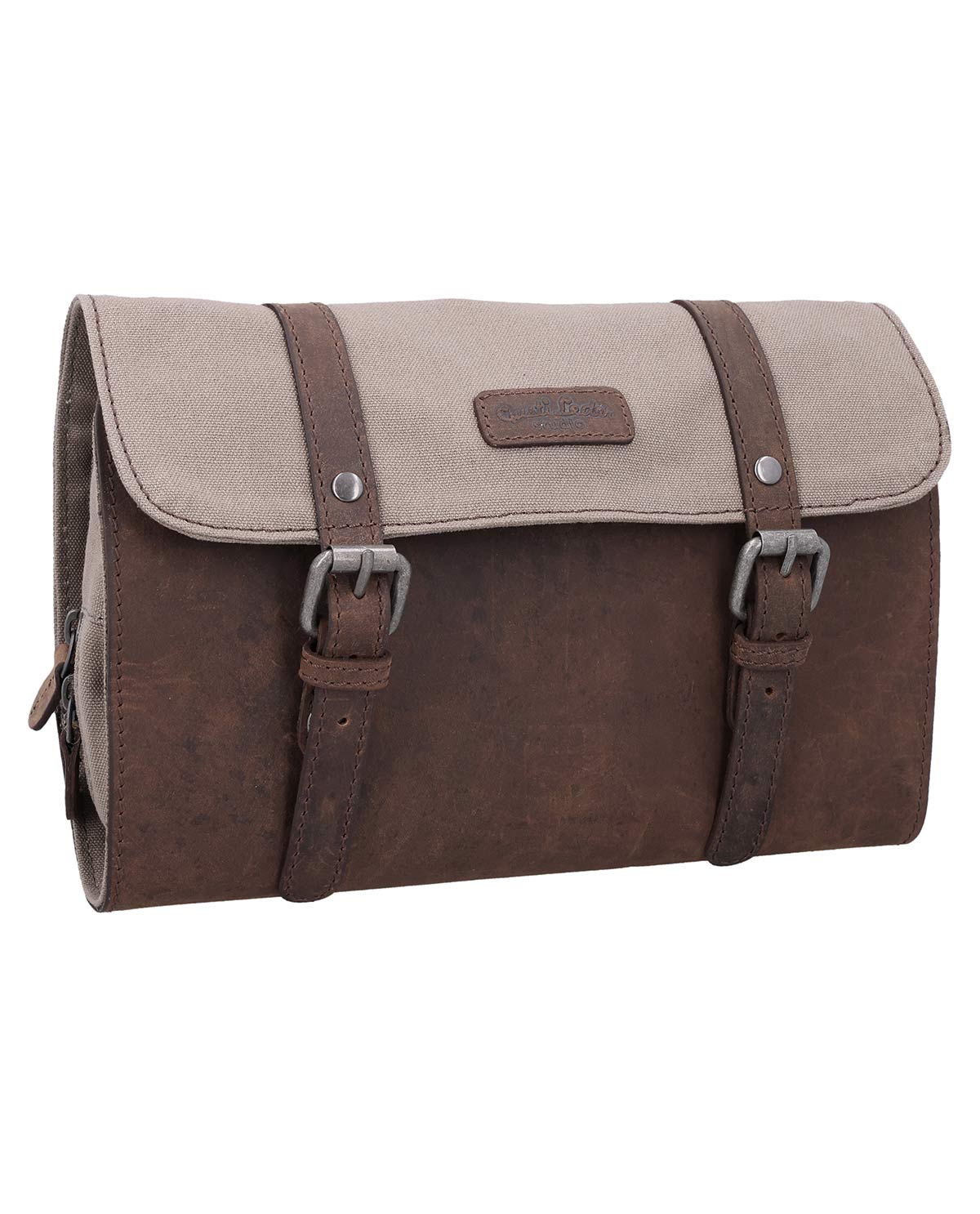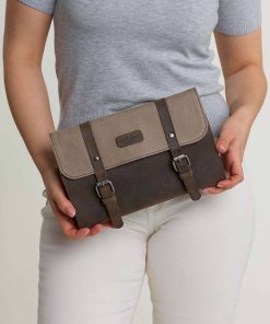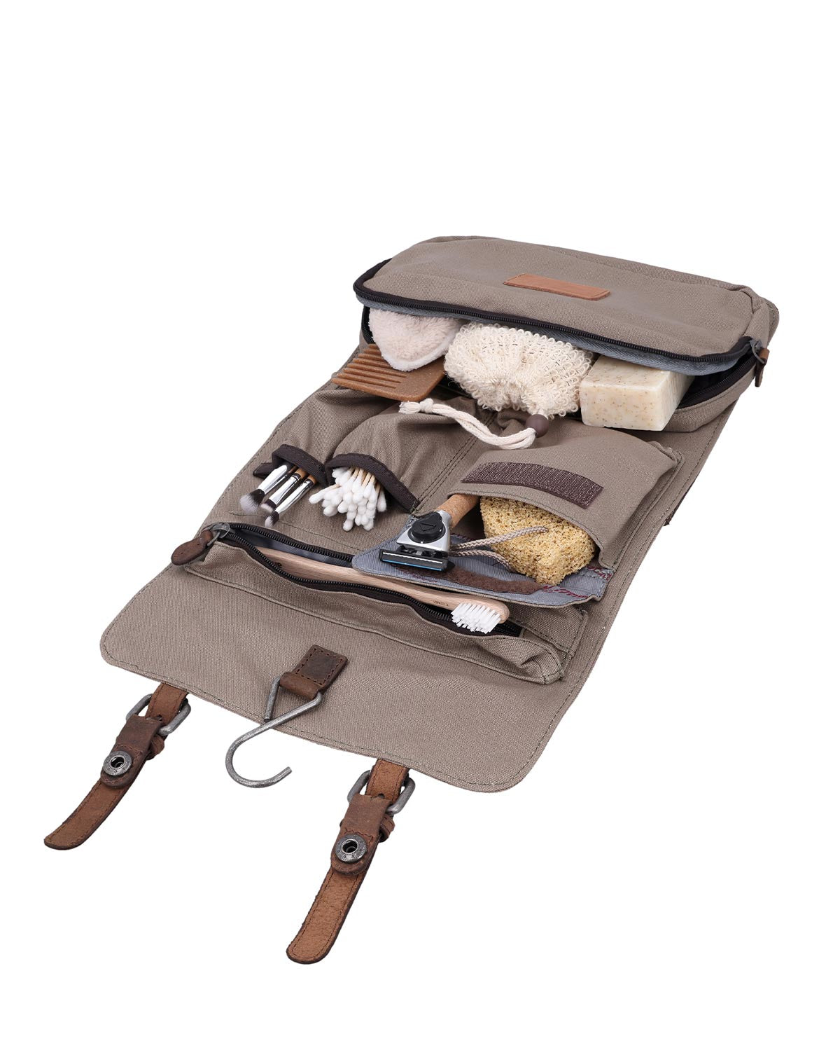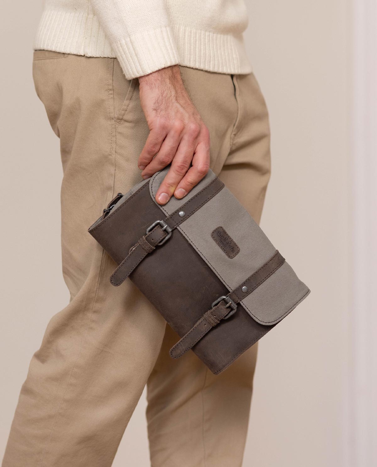 “Rodney’s” the gift that just keeps on giving. We’ve really thought of everything with this toiletry bag. It’s made of a mix of high-quality woven canvas and buffalo leather. There are lots of different sized and shaped pockets inside, so there’s plenty of space for your toothbrush, shampoo, hairbrush, shaving kit, make-up and more. The water-resistant polycotton lining stops any leakages from getting out of control. “Rodney” comes with a sturdy metal hook, so you can hang him easily on your wall. His design is completed by the adjustable buckles and press buttons. Our toiletry bag “Rodney” is truly carefree!