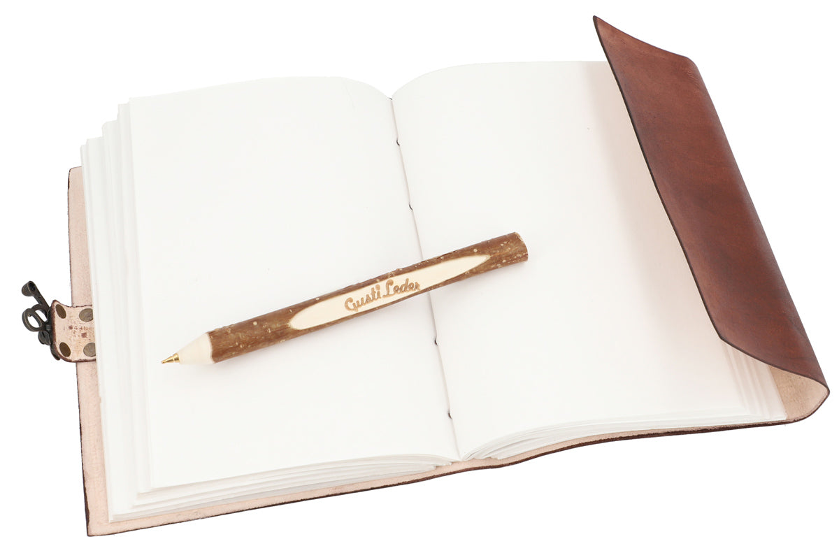 “Sola” provides approximately 240 pages for you to unleash your creativity. The retro closure hook and braided side design give “Sola” its unique vintage charm reminiscent of days gone by. Made from sturdy buffalo leather, it’s equally ideal as a beautiful leather cover for when the inserted pages are filled – sustainability can be this stylish!