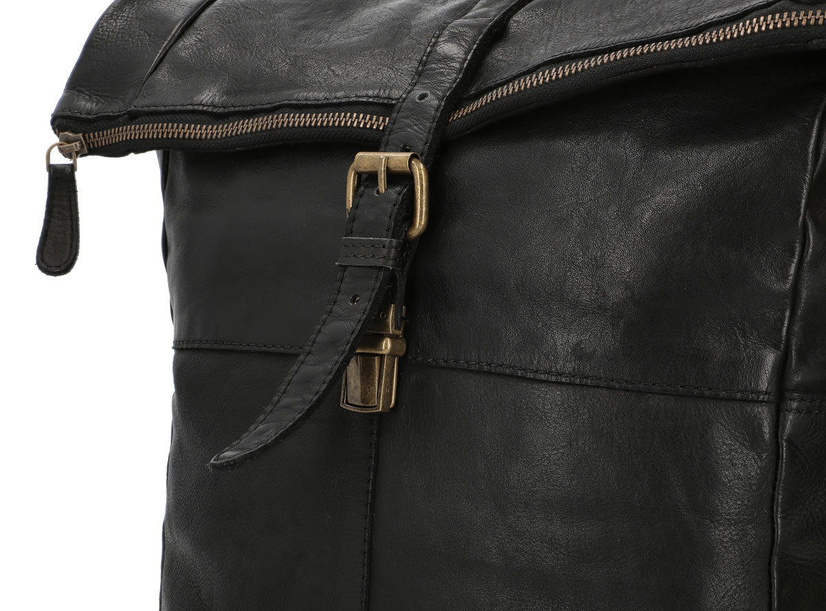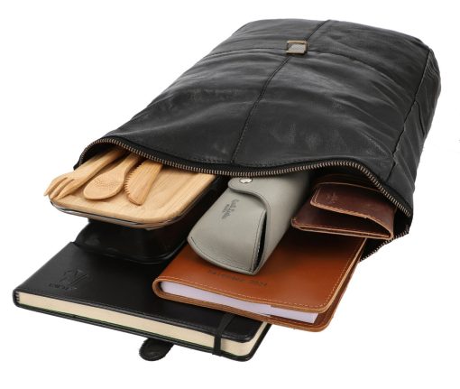 “Henning” is a medium-sized roll-top backpack made of durable cowhide leather, perfectly designed to deliver in the hustle and bustle of the city or the confines of the subway during rush hour. With its well-thought-out division, it offers you ample space to easily store your A4 documents, 15″ notebook, a handful of books, and a large water bottle in the spacious main compartment, while an additional slip pocket and zippered inner compartment help you organize your belongings systematically, ensuring everything has its proper place.