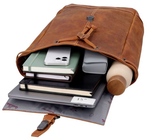 “Jaime” is a classic rucksack made of sturdy leather that will win you over with its timeless design and functionality. No matter if you’re off on a spontaneous weekend trip, heading to university or the office by bike or on foot, “Jaime” is the perfect companion for every situation. This charismatic backpack is a true fashion statement and a must-have piece.