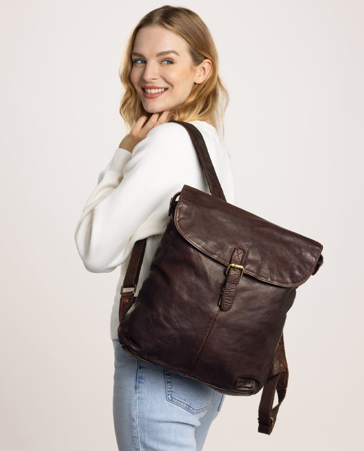 “Kieran” won’t just charm you with its high-quality full-grain leather look, but with his ingenious design too. This 100% leather backpack has more than enough space for all of your essentials and is super comfortable to wear, thanks to its wide full-grain leather straps. The main compartment has a double fastening system; the long zip and thorn-buckle-style snap lock make sure everything stays safe and secure. The extra zipped pocket on the back of the bag provides you with space to keep your valuables hidden and safe from sticky fingers. Add a timeless touch to your wardrobe with “Kieran”.