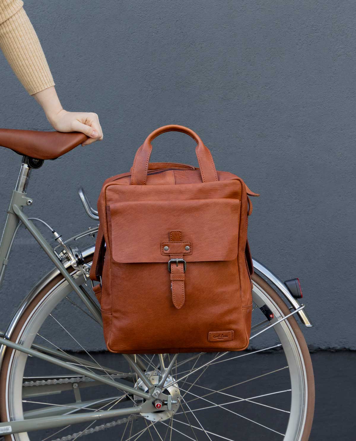 Ob auf dem Fahrrad oder zu Fuß – die “Marlin” Fahrradtasche ist Dein idealer Begleiter für den Alltag. Dank des 2-in-1-Designs kannst Du sie mühelos vom stilvollen Rucksack in eine praktische Gepäckträgertasche verwandeln. Hergestellt aus hochwertigem braunem Leder, vereint sie Funktionalität mit einem eleganten Look.