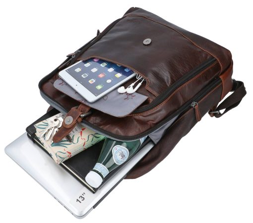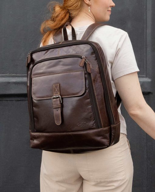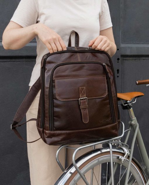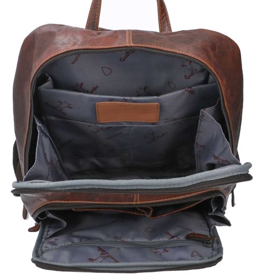No matter if you’re hitting the gym, travelling around the world, heading to the office, or just chilling every day, “Niki” will have your back! This robust buffalo leather backpack has a water-resistant lining and can take on any challenge. She’s a practical yet chic accessory that’s helping us redefine the modern leather backpack. There are 5 compartments of varying sizes inside, so you can take your hiking boots, water bottle, A4 documents and 15.6-inch laptop with you when you’re on the go. Her pockets make sure your belongings stay safe and secure. “Niki” has 2 extra zipped pockets where you can keep your valuables. The wide, adjustable straps on this bag mean that it’s super comfortable to wear. We haven’t just thought about functionality at Gusti Leather, so “Niki” comes in a stylish vintage design too!
