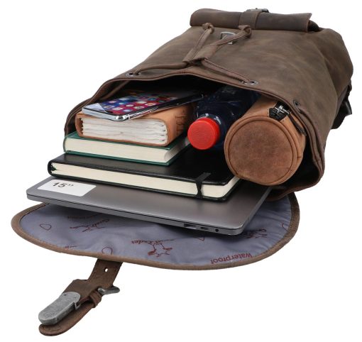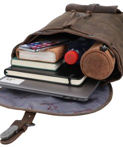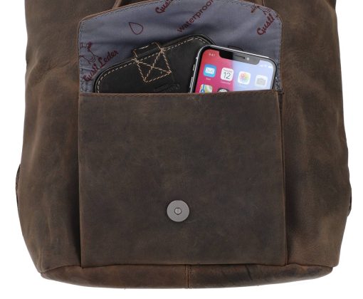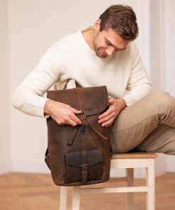 This spacious robust real leather backpack doesn’t just look good, it’s versatile and comfortable too! “Nolan’s” spacious main compartment has more than enough space for your 13-inch laptop, A4 folders and notebooks, etc., as well as for your hiking equipment and picnic. The drawstring and thorn-buckle-style snap lock mean that everything is kept safe and sound in your backpack, so you won’t lose anything when you’re on the go. There’s an extra zipped pocket inside which offers you extra storage space for your valuables, like your wallet, keys, etc. “Nolan” also has an extra patch pocket with a magnet closure where you can keep things you need quickly, like your tissues, sanitiser, gum, snacks, and more. “Nolan” is lined with water-resistant polycotton, while the back of the bag and the underside of the adjustable shoulder straps are padded with a colour-coordinated canvas, offering you extra comfort, no matter where you are.