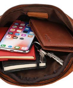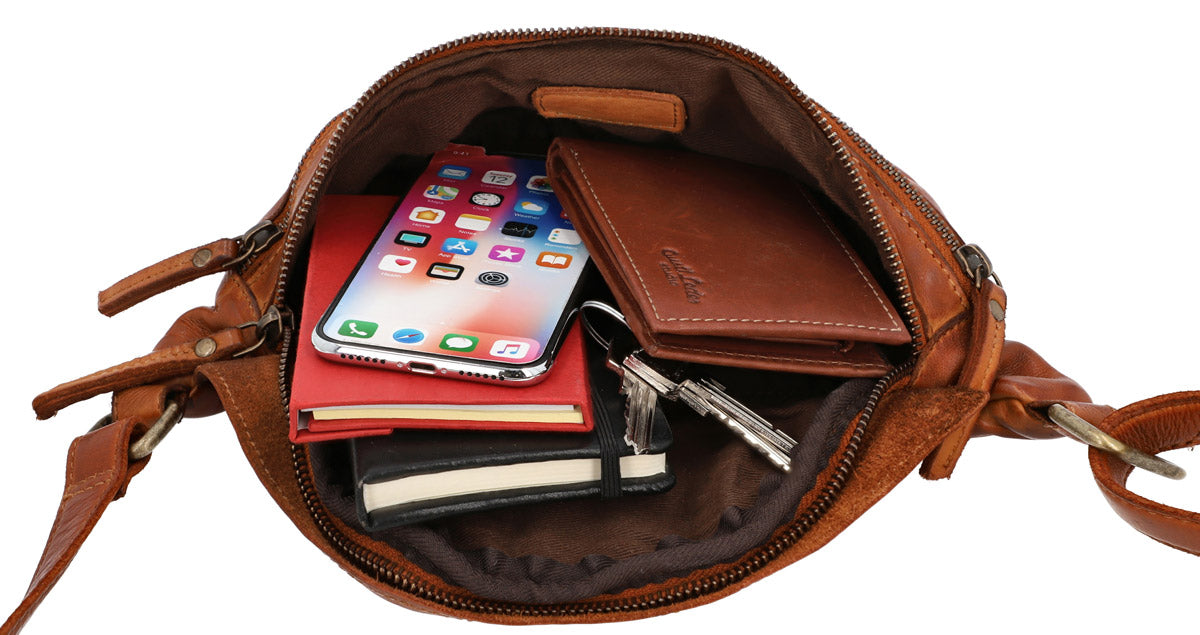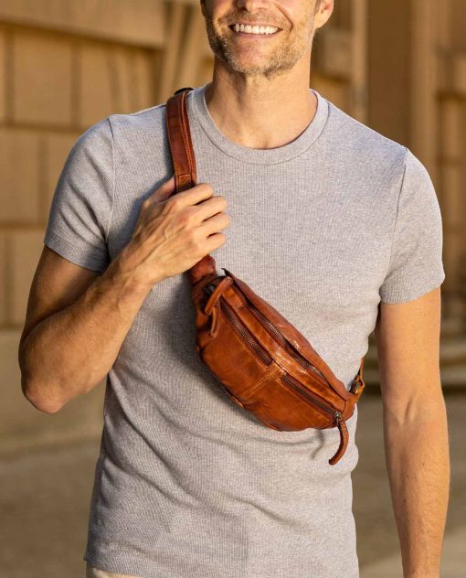 Are you looking for a cool belt bag that you can wear during festival season? Something handy where you can keep snacks or your essentials? Then “Acton” is exactly what you’ve been looking for! This cool vintage bag is made from sturdy cowhide leather and always looks good. There’s plenty of space in the large main compartment for your belongings. You’ll find two zipped pockets on the front of the bag where you can keep your essentials. Bring on Coachella! But that’s not all… This spacious belt bag can be used all year round. Keep your wallet, keys, and phone safe at concerts during the winter months. You can enjoy the music without worrying about your things.