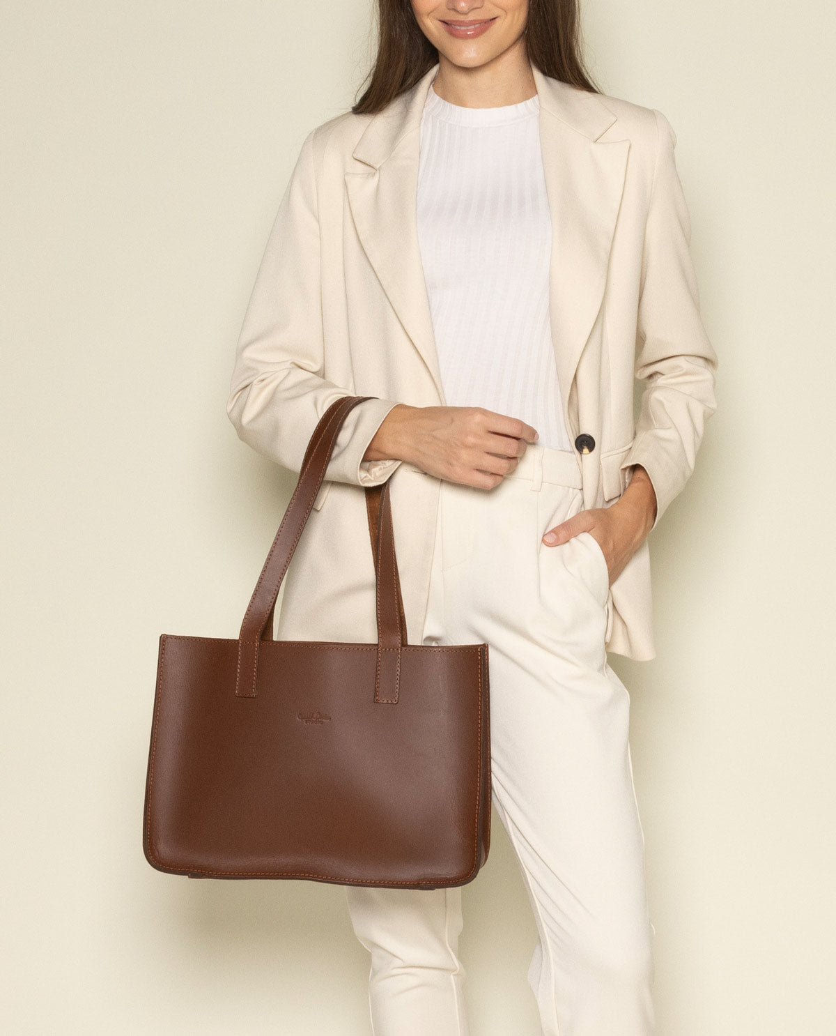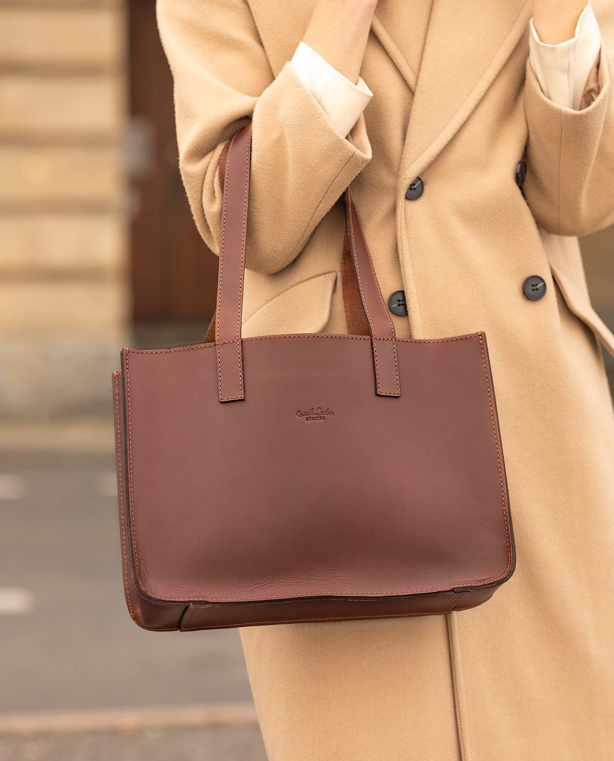Whether it’s a quick city stroll after uni or a visit to the library – the small “Agatha S” offers you plenty of space for the essentials. Your tablet, purse, a notebook, keys, and pencil case all fit perfectly inside. The genuine leather handles complete the elegant design and make “Agatha S” the perfect everyday companion for those who want to be compact and stylish on the go.
