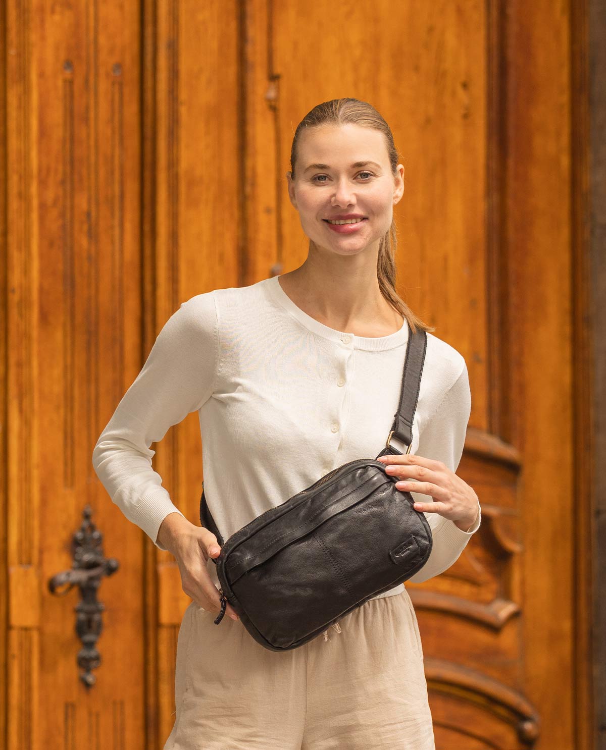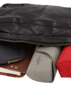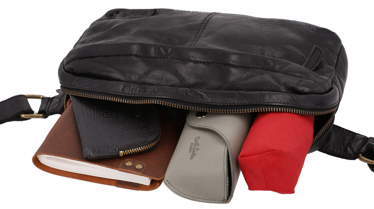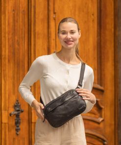 Check out our timeless black leather shoulder bag at Gusti Leather. This exclusive handbag is made of vegetable-tanned cowhide leather which makes it the perfect accessory. There’s plenty of space for your belongings in this 30 x 20 cm (W x H) bag. Secure your things in the main compartment using the sturdy zip. Adjust the strap so the bag sits comfortably on your shoulder. This classic leather bag adds an elegant vintage touch to any outfit.