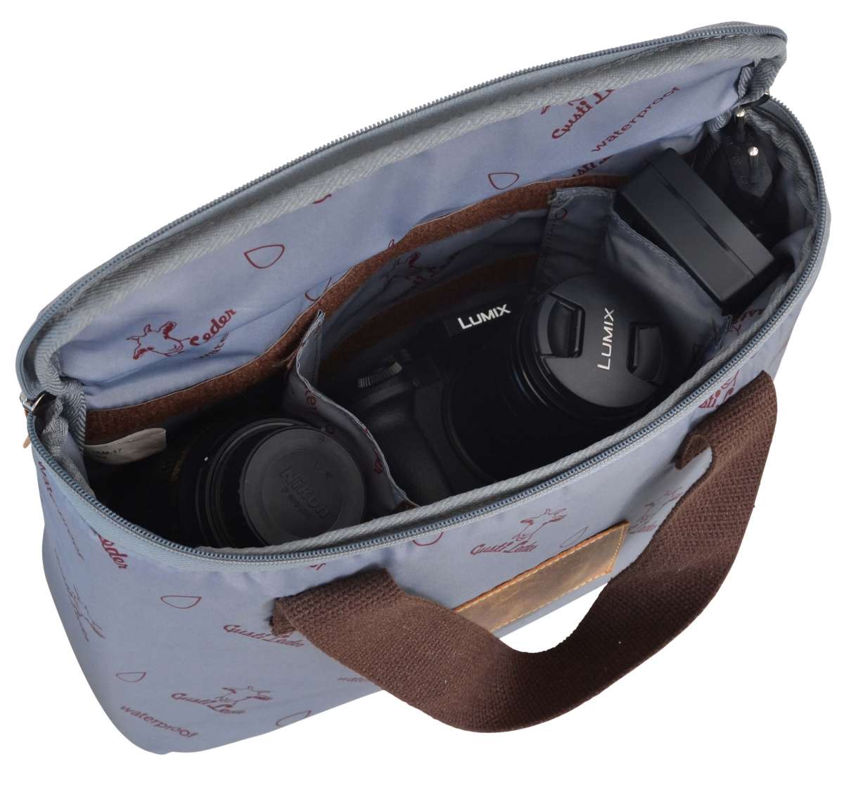 Check out our practical 11-inch padded insert. Our “Cameron 11” helps keep your camera gear safely organised in your bag. This water-resistant polycotton insert protects your equipment from any water or splashes. There are different-sized pockets and compartments inside where you can keep your camera, lens, charger, and anything else you need. The inner compartment is closed using a zip which stops your things from getting lost on the way. This padded insert fits neatly in other bags but can be carried using the handles too. It’s the perfect practical accessory for photographers everywhere!