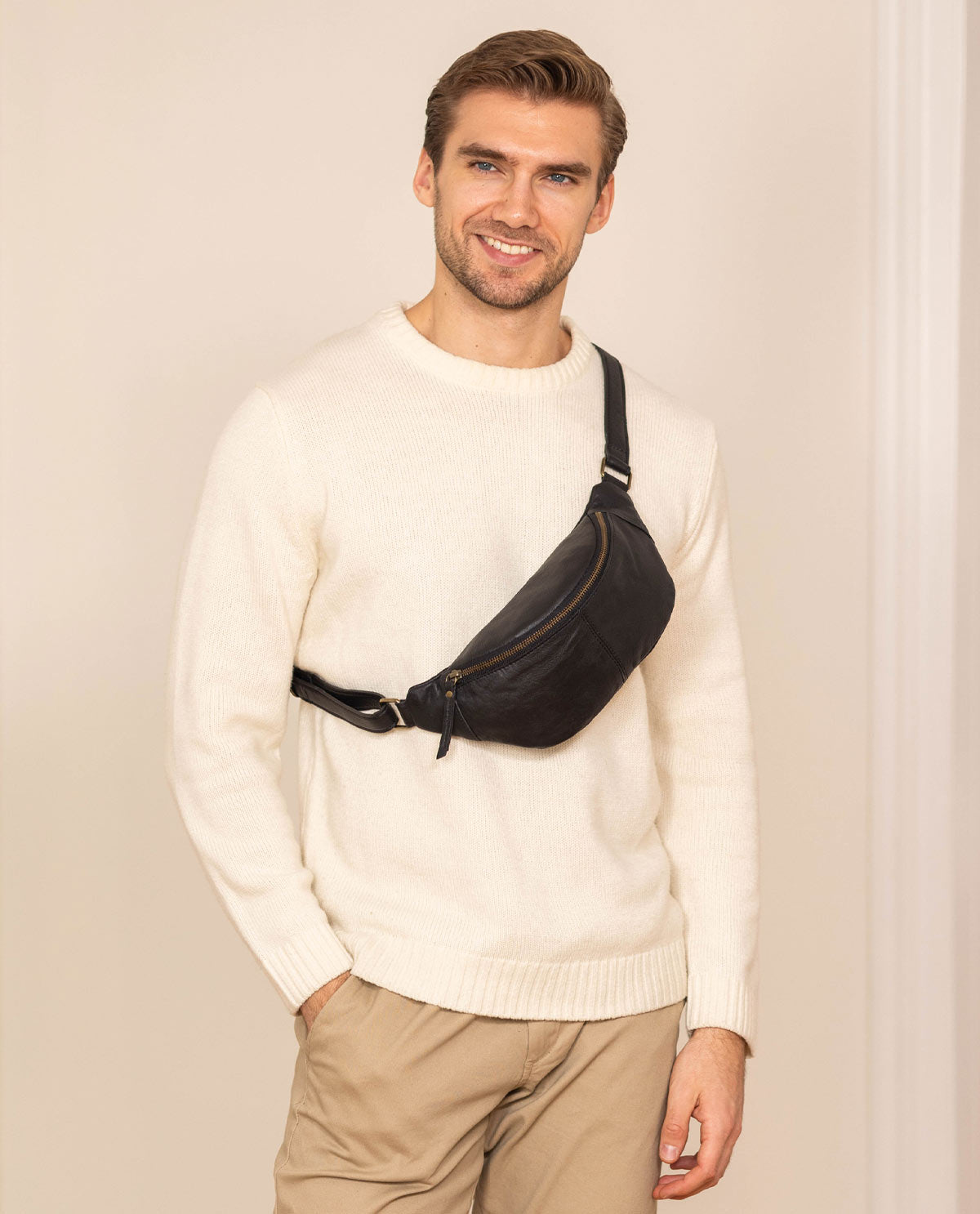 Handbag too big but pockets not big enough? We’ve got the perfect solution. “Cillian” can go with you to events where a big bag would just get in the way. Who wants to wear a cross body bag to a concert? Handbags just get in the way when you’re dancing! “Cillian” helps you keep your essentials close by. There’s plenty of space in this buffalo leather belt bag for your phone, keys, and cash. Wear it around your waist or casually over your shoulder. It’s up to you! “Cillian’s” minimalist design means you can wear this practical, yet stylish, bag with any outfit. Summer’s on the way. So get ready for your next festival!