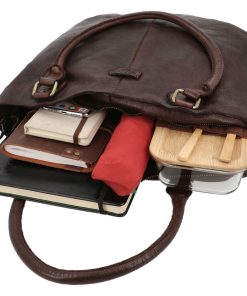 This large brown leather bag has plenty of space for your essentials. Use it as a handbag, shoulder bag or tote bag, you’ll love its versatility. You’ll find multiple pockets and a separate laptop compartment inside where you can keep your belongings organised.