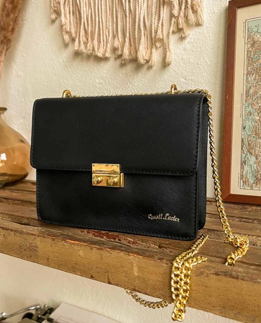 Are you looking for an elegant handbag that will accompany you both in everyday life and for special occasions? Then this small shoulder bag made of high-quality black leather is just right for you. Its timeless vintage design makes it a true classic that will never go out of style. Thanks to its compact size, it’s perfect for stylishly storing your essentials such as your phone, keys, and lipstick.