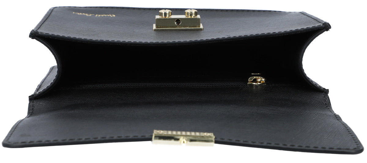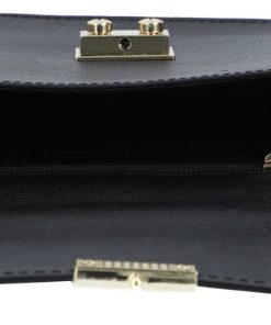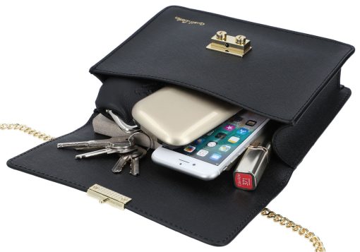 The bag impresses with its elegant shoulder strap with a gold chain, adding a touch of luxury to any of your outfits. The shiny surface of the chain provides a modern yet classic look, perfectly harmonizing with the high-quality black leather of the bag. With this combination, you’ll always be stylish on the go.