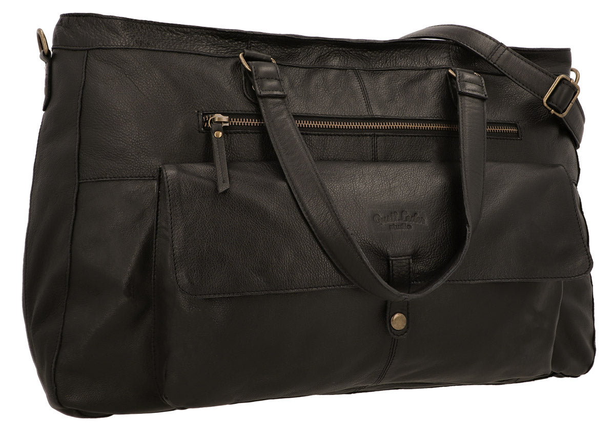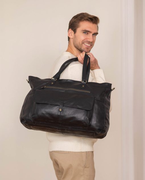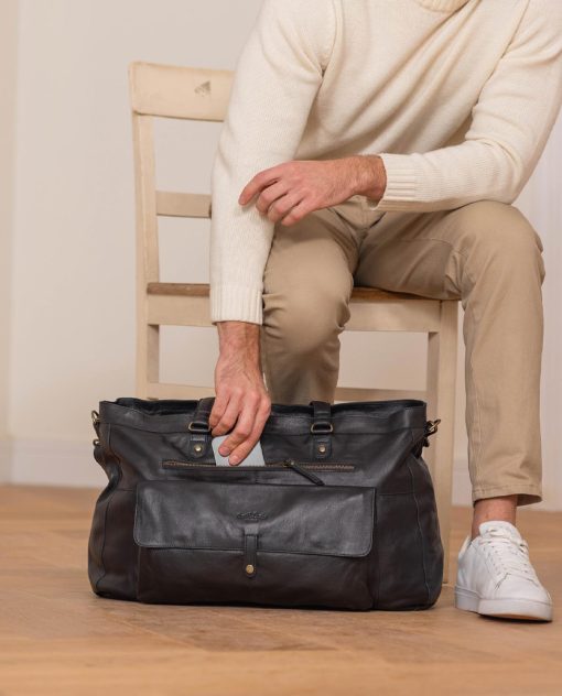 Are you looking for a sturdy yet stylish travel bag that’s as versatile as you are? Then our black leather duffel bag is exactly what you’ve been looking for. This high-quality leather travel bag comes in a timeless design and can be your travel buddy for years to come.