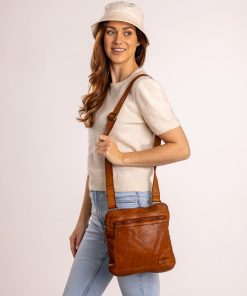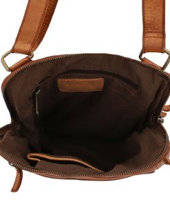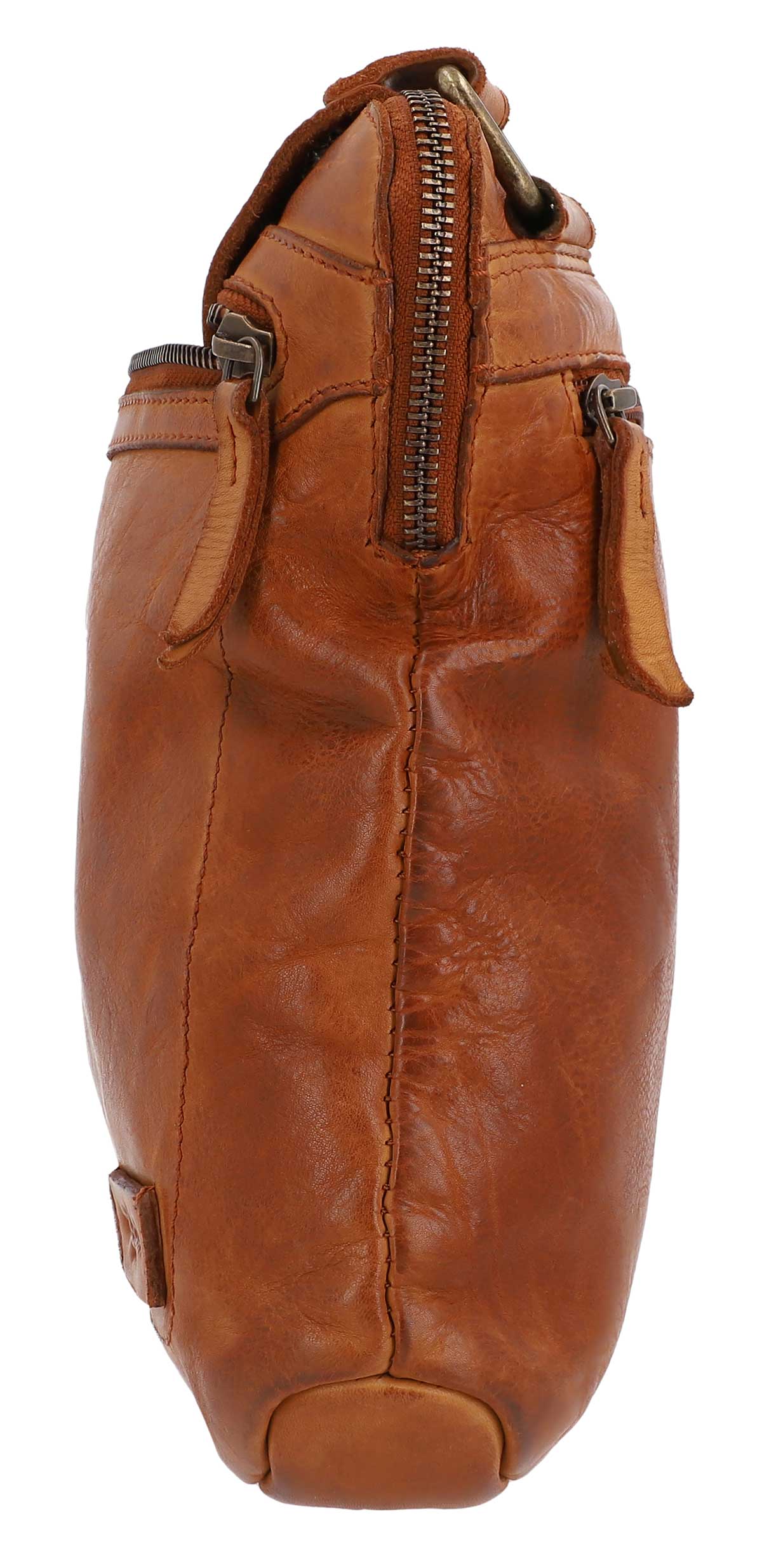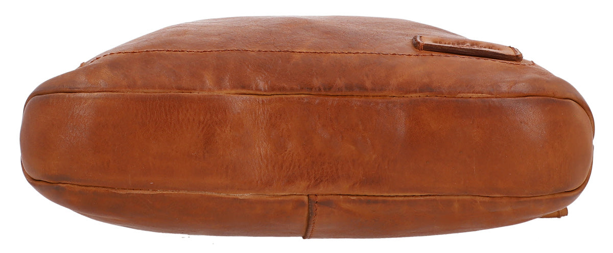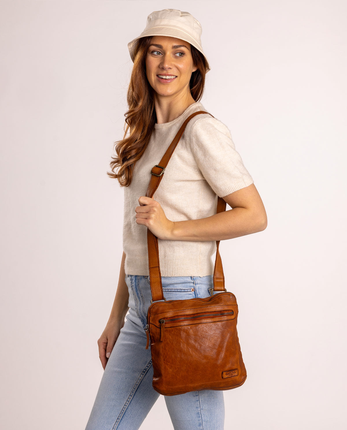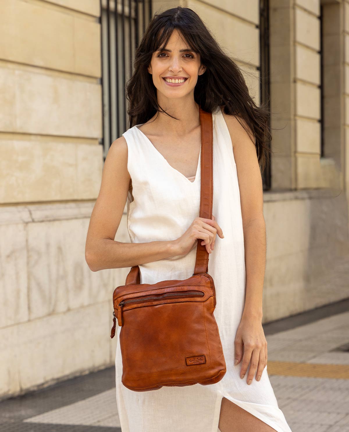 This leather bag combines functionality with classic design. In addition to the spacious main compartment, it has two zippered pockets, one on the front and one on the back. These practical pockets allow you to store your items neatly and accessibly. Carry it comfortably over the shoulder or in hand and enjoy the versatility and elegance of this bag. Experience the high-quality craftsmanship and stylish look that becomes more beautiful over time.