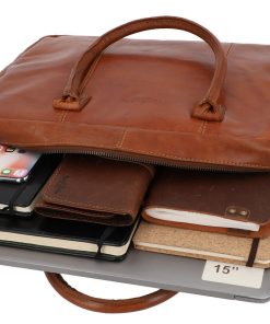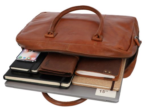 Our Gusti Leather briefcase is made from premium brown leather which gives it an authentic vintage look and means it’ll last a lifetime. The high-quality material has been carefully processed to ensure this leather bag can withstand anything you throw at it.