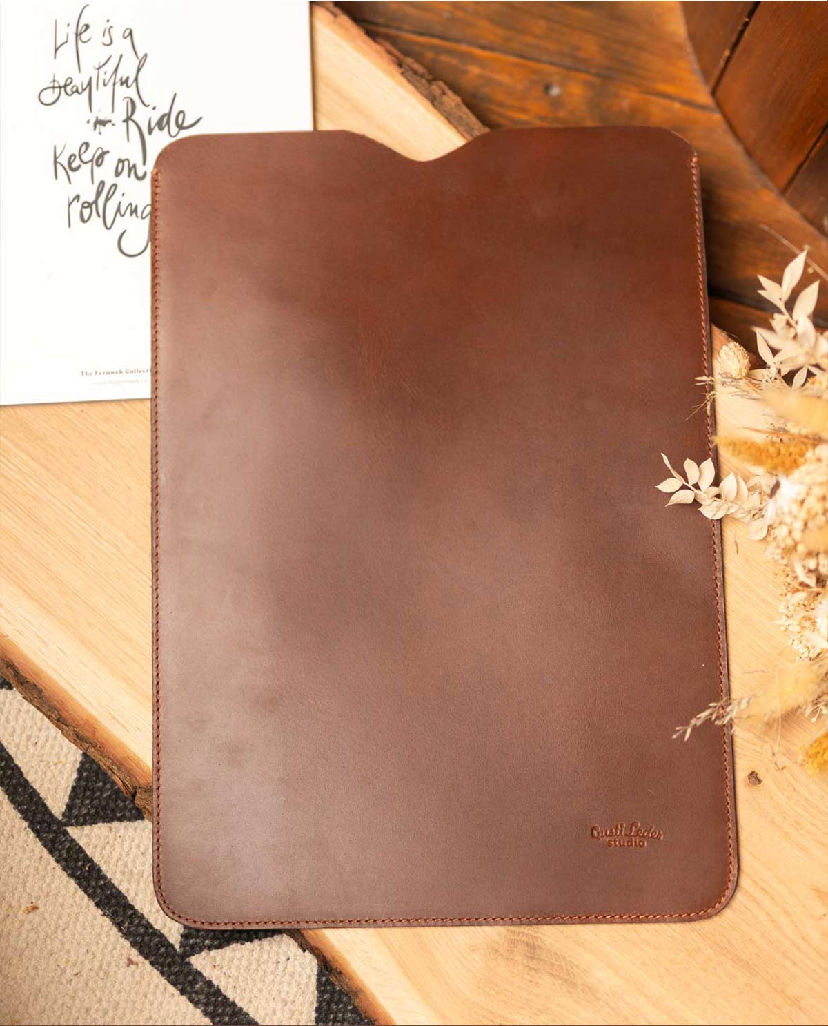 The robust buffalo leather protects your laptop and makes this laptop case extra sturdy. The simple leather tab closure makes sure your laptop is kept safe and secure but easy to reach. So you’ll be well-equipped when you’re on the go! Our leather laptop case “Lucio L.” is perfect for those who love vintage styles.