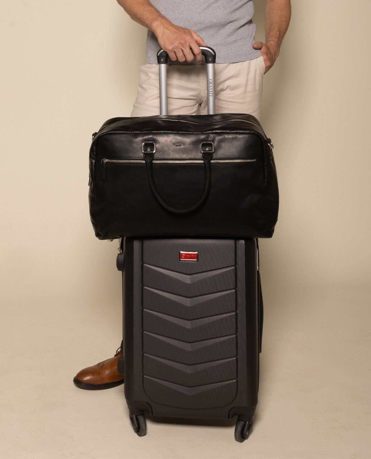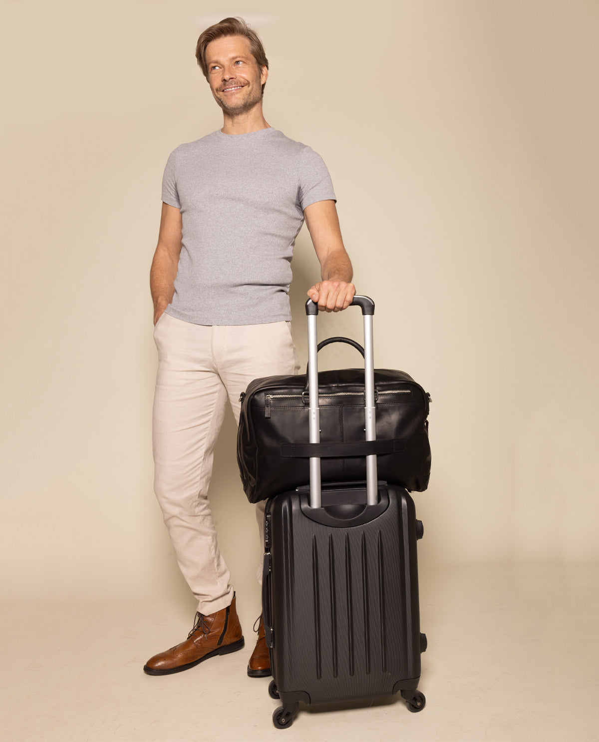 “Mauricio” comes with a helpful sleeve on the back so you can slide this messenger bag onto the top of your suitcase.