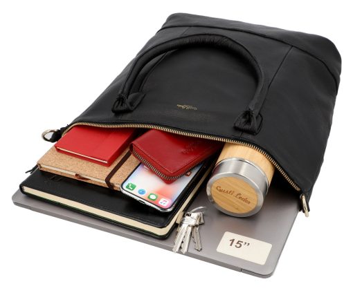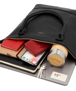 Made from high-quality tanned buffalo leather, this shoulder bag impresses with its sheer size and offers you versatility at the highest level. The extra-large interior compartment of “Mia” has a capacity of 10 liters and thus offers enough space for everything. Here, your 15-inch notebook, wallet, small umbrella, various notebooks, keys, and pencil case find their place. Additionally, the large opening provides enough storage space for some spontaneous shopping. Additionally, you have a side pocket at the back where you can store items like headphones or keys on the go.