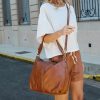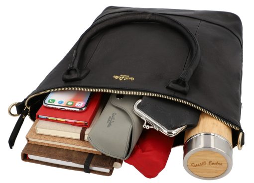 Made from high-quality tanned cowhide leather, this crossbody bag impresses with its sheer size and offers you versatility at the highest level. The extra-large interior compartment of “Mia” has a capacity of 10 liters and therefore provides enough space for everything. Here, your 15-inch notebook, wallet, small umbrella, various notebooks, keys, and pencil case find their place. Additionally, the large opening provides enough storage space for the occasional spontaneous purchase.Additionally, you have a side pocket at the back where you can store things like headphones or keys on the fly.