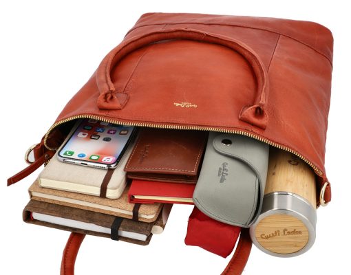 Made from high-quality tanned cowhide, this shoulder bag impresses with its sheer size and offers you versatility at the highest level. The extra-large interior compartment of “Mia” has a capacity of 10 liters and thus provides enough space for everything. Here you can fit your 15-inch notebook, wallet, small umbrella, various notebooks, keys, and pencil case. Additionally, the large opening offers enough storage space for a spontaneous purchase. Additionally, you have a side pocket at the back where you can store items on the spot, like headphones or keys.