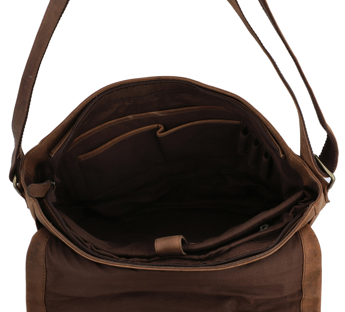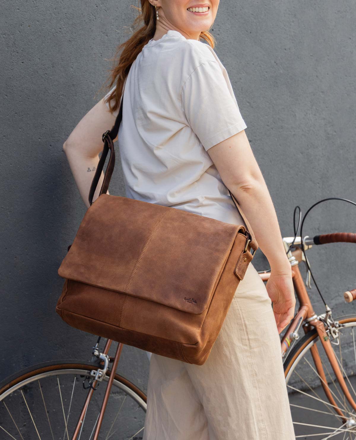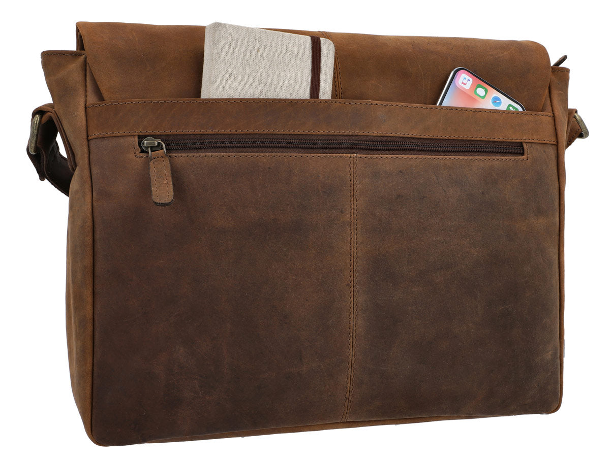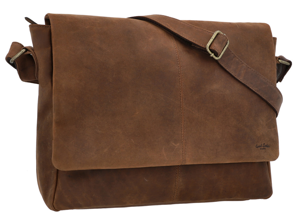 Our crossbody bag is made from high-quality, robust leather. The durable material gains character over time and develops a unique patina. Each bag is handcrafted and has its own individual features, making it a unique one-of-a-kind piece. The brown colour gives the bag an authentic vintage look that perfectly complements any outfit. Additionally, the bag offers ample storage space: the main compartment is large enough for a tablet, a notebook, or important documents. Two interior pockets and a zippered pocket provide organisation, while the adjustable shoulder strap ensures optimal carrying comfort – whether worn casually over the shoulder or crossbody.