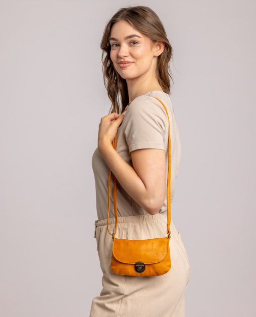 Do you want to go out but don’t want to take a big bag with you? Have you met our “Rona”? This petite leather handbag comes in a trendy vintage look and has plenty of space for your phone, keys, and purse! She’s the perfect companion when you want to take a short walk but don’t have any pockets. “Rona” looks extra chic when paired with a beautiful floral dress, but she also looks good with jeans and a nice jumper. This simple yet elegant bag complements any outfit, she’s stylish yet subtle.
