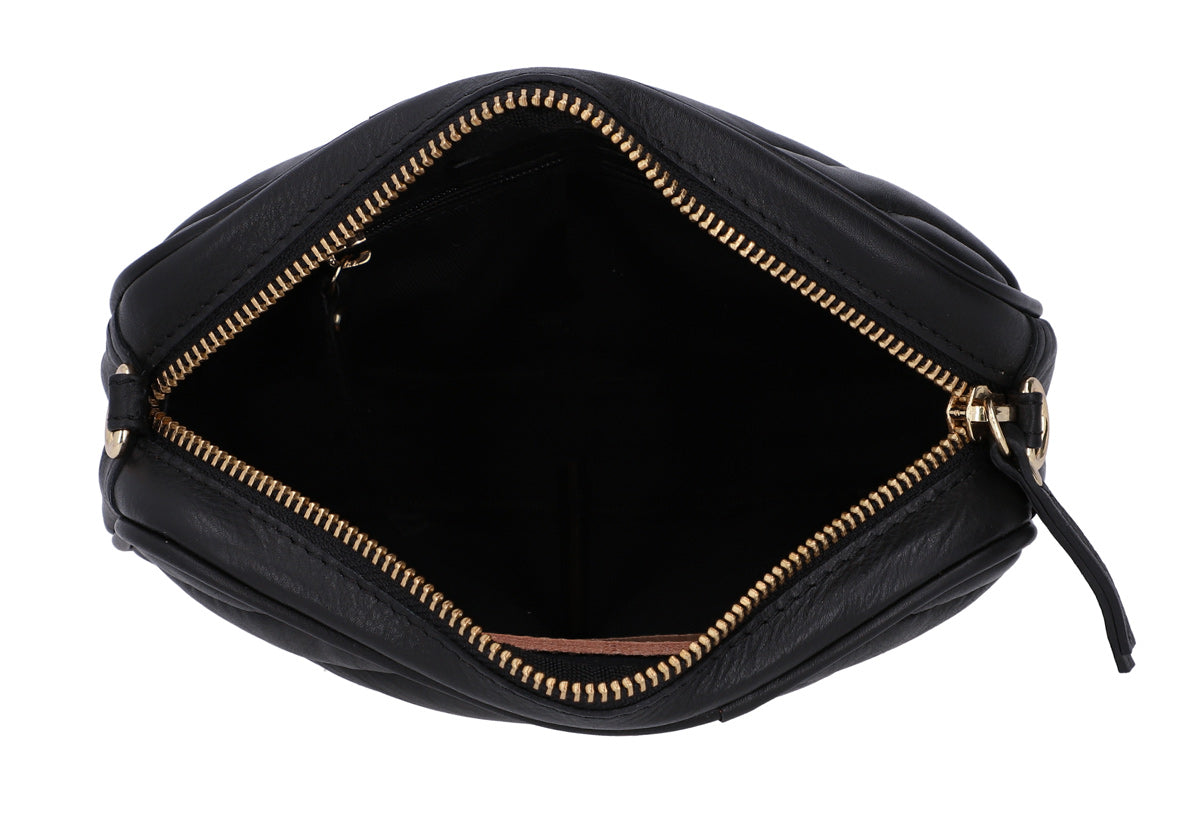 “Skylar” is made of high-quality processed buffalo leather. Inside, she has 1 main compartment with plenty of space for your essentials. There’s plenty of space for your purse, lipstick, keys, and more. The gold metal closures contrast with this crossbody bag’s trendy design. The zip protects your belongings from sticky fingers when you’re on the go. Just attach the strap to the bag using the carabiner and off you go!